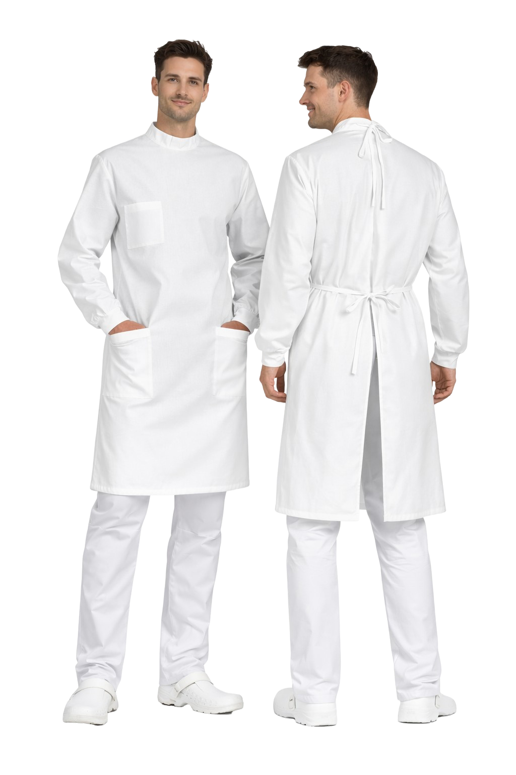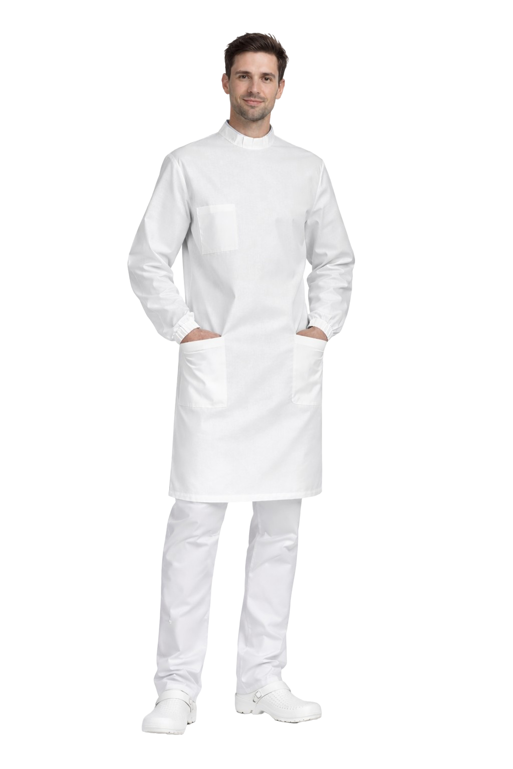 Anatomski / prosektorni bijeli unisex kut s džepovima i ovratnikom 100% pamuk