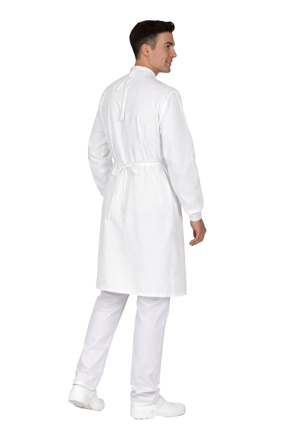 Anatomski/obdukcijski bijeli uniseks pregač sa džepovima i ovratnikom idealan je izbor za svakoga tko treba funkcionalnu, a ujedno i estetsku zaštitnu odjeću. Izrađen je 100% od pamuka, pruža udobnost i slobodu pokreta, što je iznimno važno tijekom rada u obdukcijskoj sali, na medicinskim, veterinarskim fakultetima ili istraživačkim institutima. Prejač je zatvoren s dvije trake s leđa, ima praktične steznike na krajevima rukava i seže do koljena, što garantira odgovarajuću zaštitu. Izvrstan za studente, ali i profesionalce - odaberite pregač koji kombinira funkcionalnost s visokokvalitetnim materijalom.