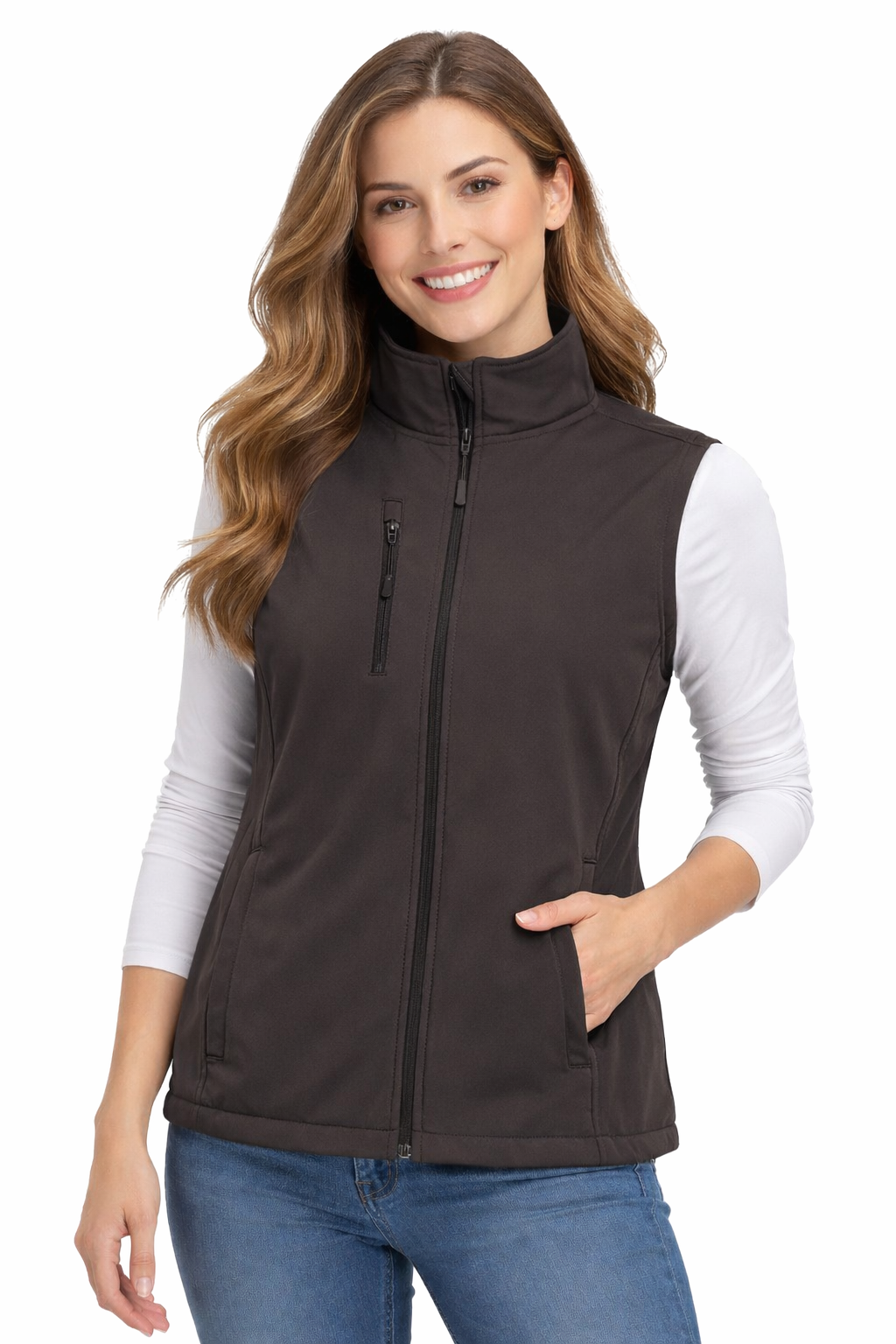 Ženski softshell prsluk siv je dizajniran za udobno nošenje tijekom cijelog dana. Zahvaljujući 3-slojnoj prozračnoj membrani, dobro štiti od vjetra, a završetak s polarom povećava toplinsku udobnost. Klasična crna boja čini ovaj model lako prilagodljivim medicinskoj, radnoj i poslovnoj odjeći. To je univerzalan izbor za žene koje cijene praktična rješenja i profesionalan izgled.