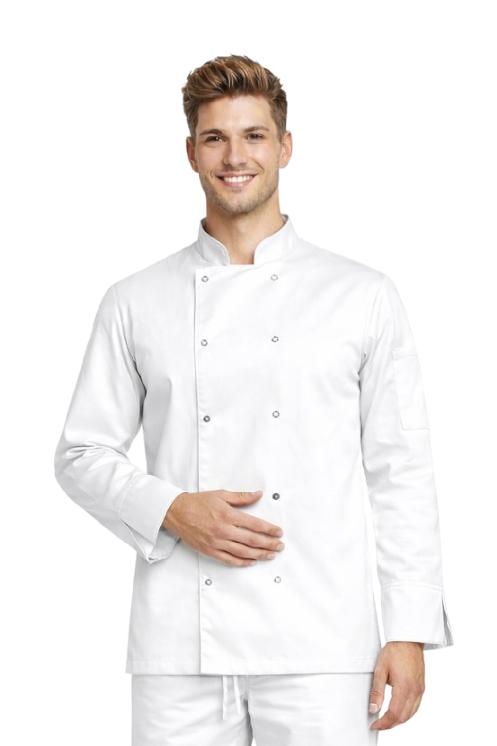 Dugački kuharski jahaći bijeli, s gumbima – elastičan, dugi rukav