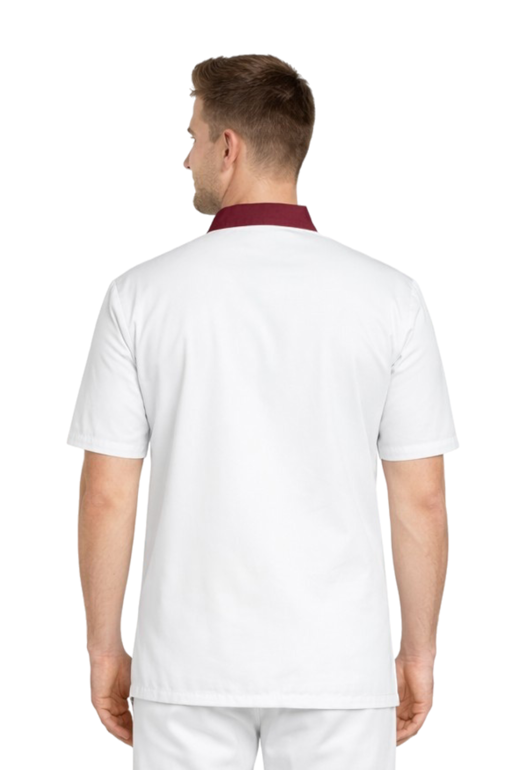 Kuharska bluza muška bijela s bordo ovratnikom i dugmadima