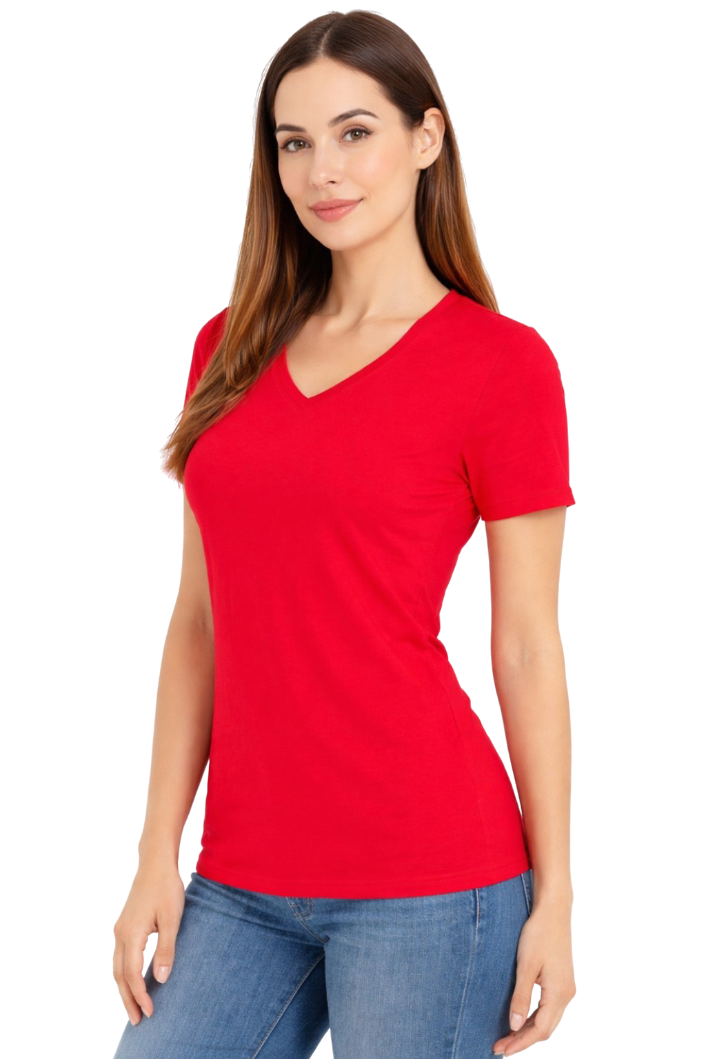 Crvena ženska majica kratkih rukava s V-izrezom