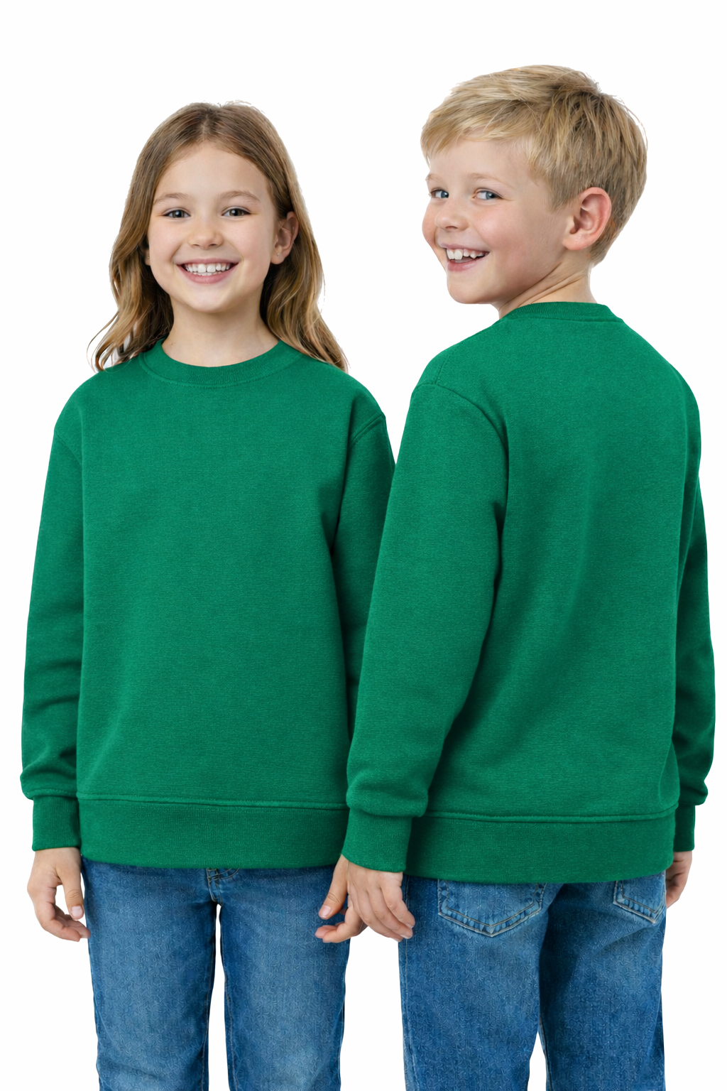 Dječja trenirka zelena je klasična i udobna trenirka s okruglim ovratnikom namijenjena dječacima i djevojčicama. Izrađena od visokokvalitetnih materijala osigurava udobnost nošenja, izdržljivost i slobodu pokreta tijekom svakodnevnih aktivnosti.