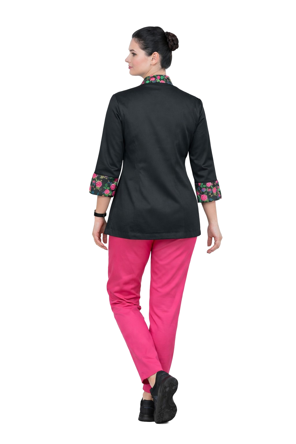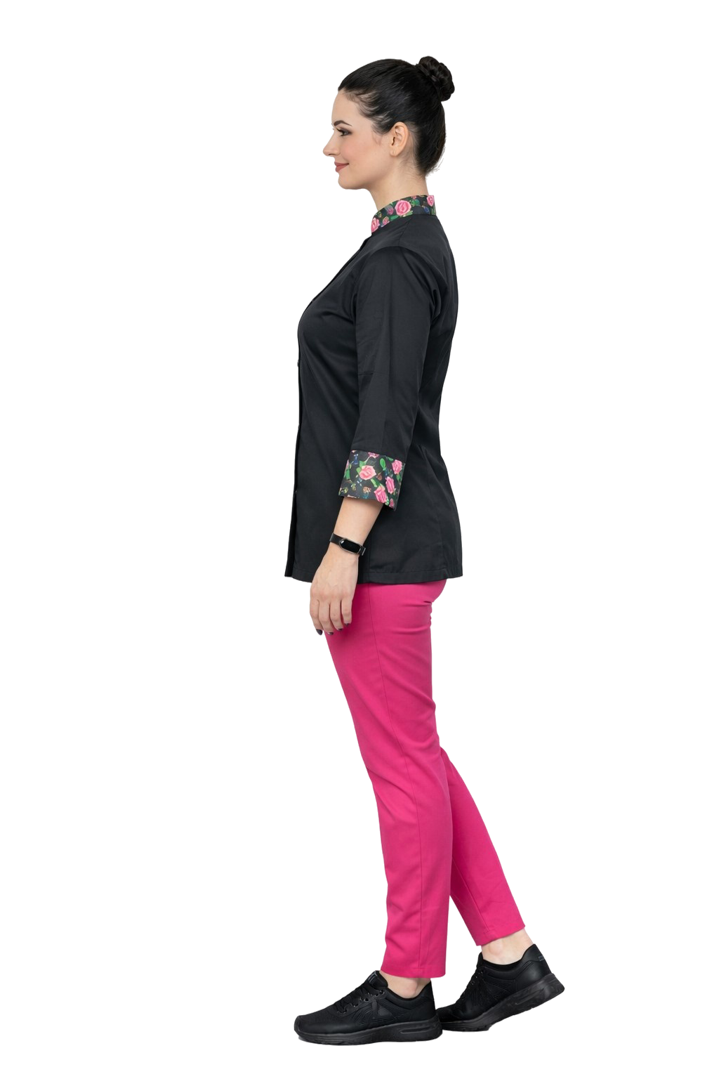 Unikatan karakter bluze pokazuju cvjetni umetci na ovratniku i manšetama, izrađeni od 100% pamuka, koji suptilno naglašavaju ženski stil uniforme.