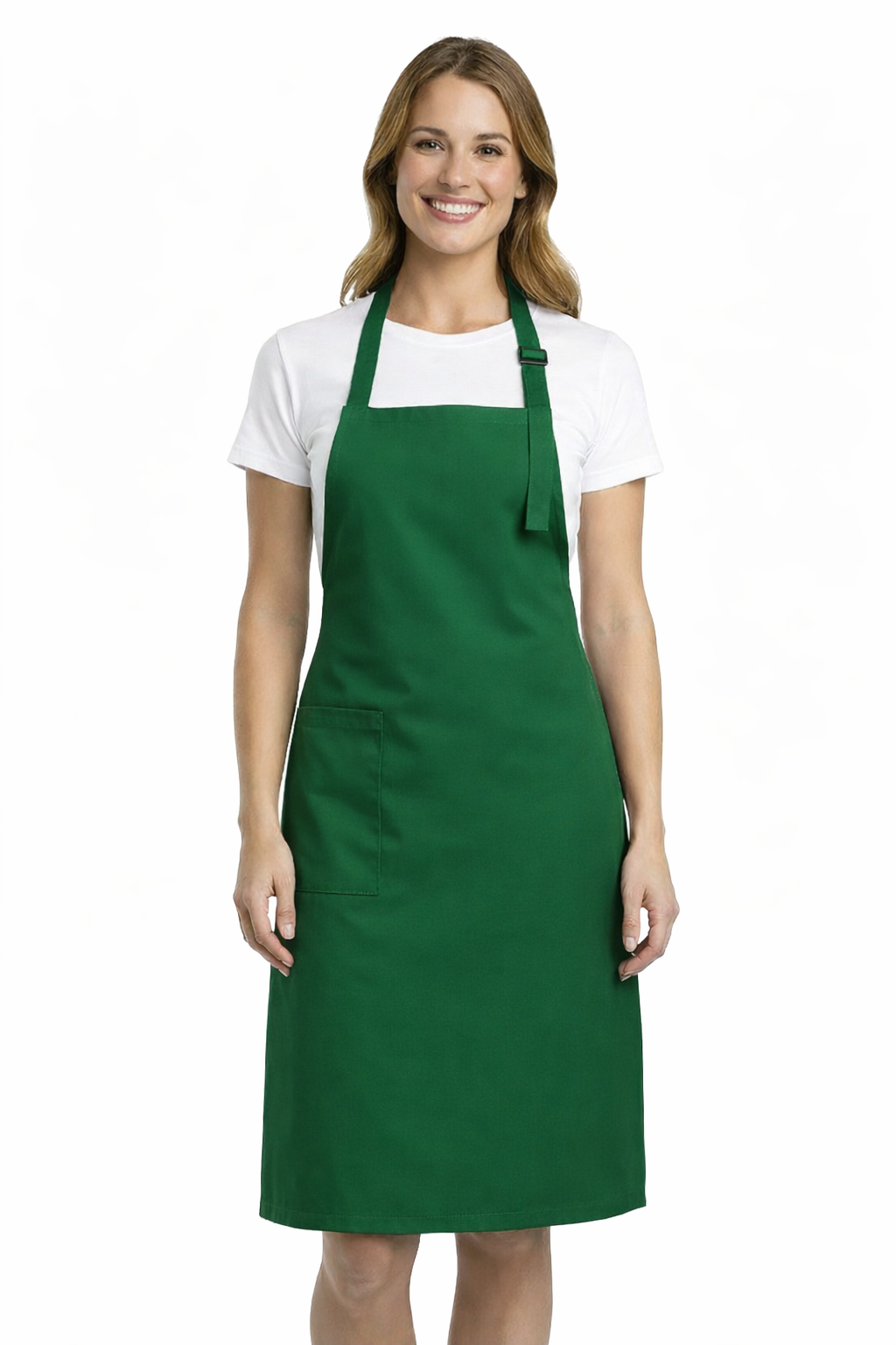 Zelena gastronomska pregača dužine 90 cm funkcionalna je i stilizirana kecelja namijenjena konobaricama, konobarima, barmenima, baristima, picolima i kuharima. Ovo je univerzalni model za sve predstavnike restorativne i druge grane gastronomije.