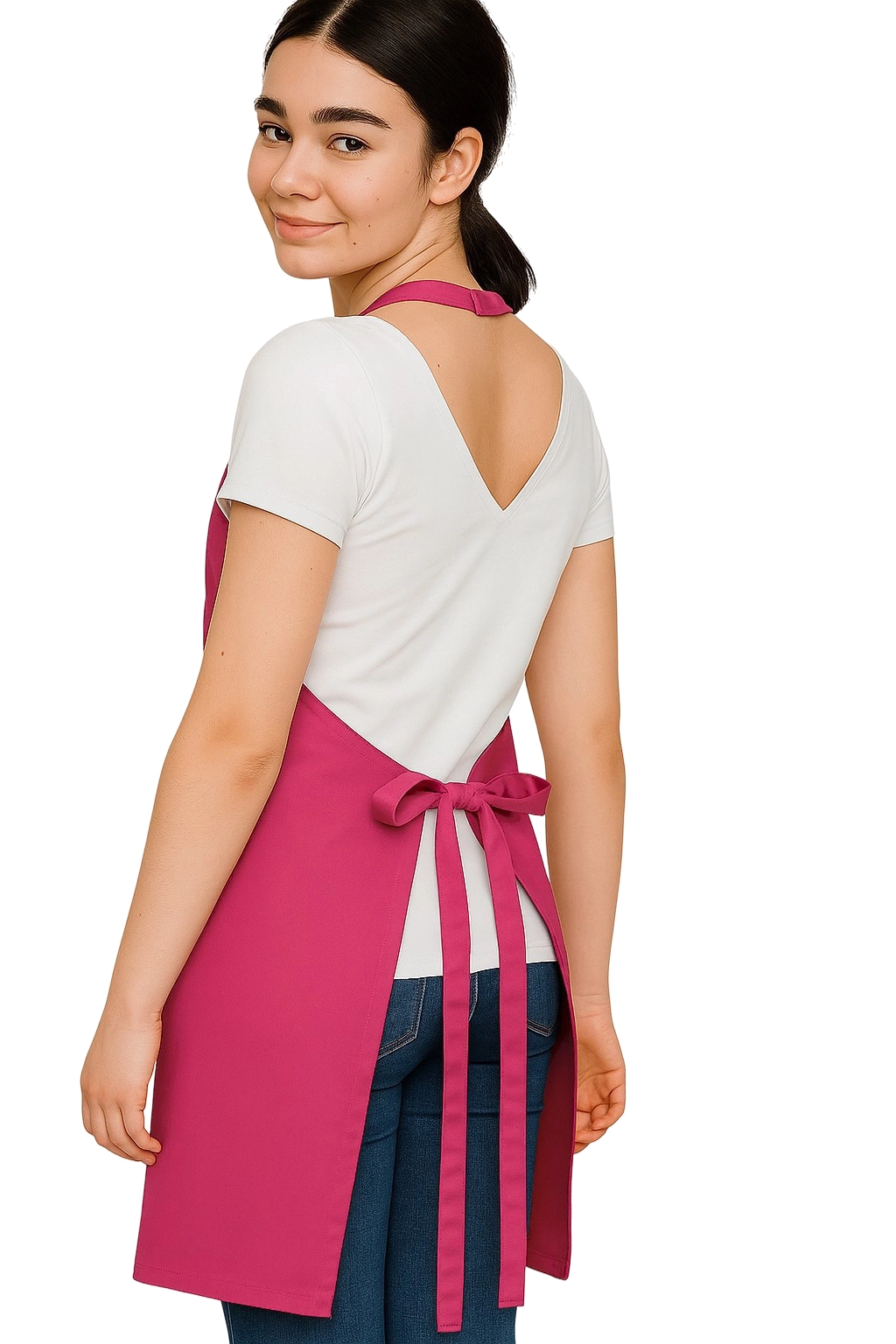 Pregač je izrađen od mješavine 65% poliestera i 35% pamuka, što jamči otpornost na oštećenja, često pranje i očuvanje intenzivne smeđe boje. Visoka gramaža 210 g/m² čini materijal izdržljivim, a istovremeno udobnim za nošenje. Zahvaljujući podesivoj kopči na naramenicama i veženju s leđa, pregač se može lako prilagoditi svakom obliku tijela.