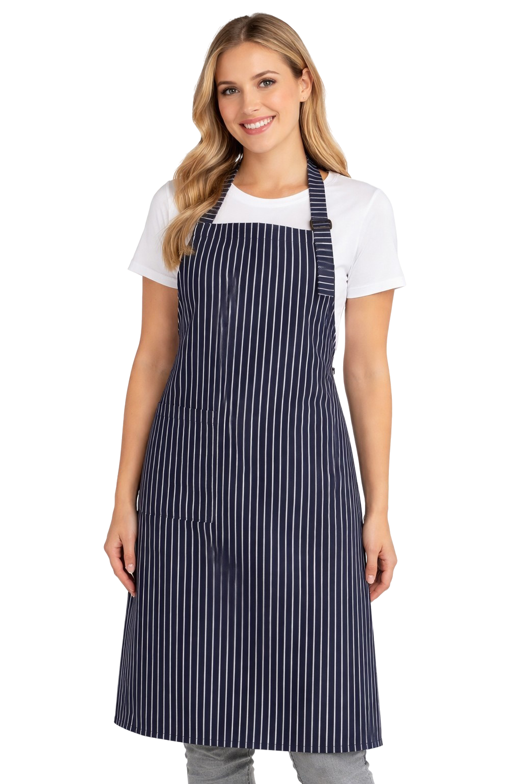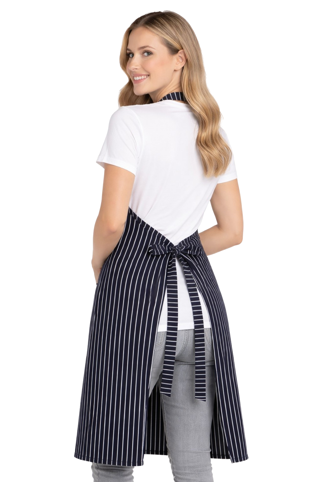 Osim zaštite odjeće od prljavštine, pregač također ima i reprezentativnu funkciju – elegantni prugasti uzorak savršeno se uklapa s profesionalnom odjećom osoblja.
