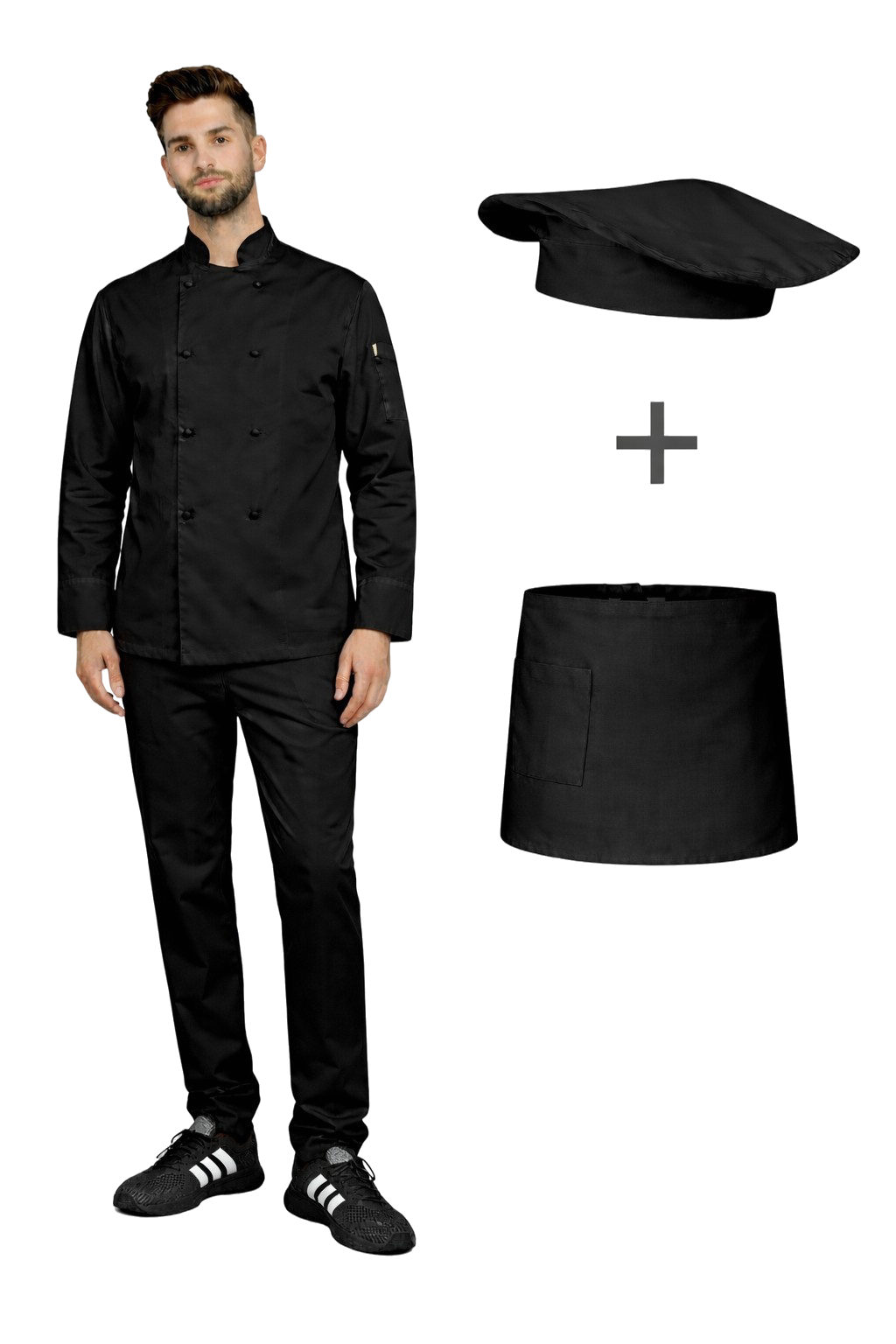 Uniforma kuhara / chefa je kompletni set ugostiteljske odjeće, dizajniran za profesionalne kuhinje. Uredna, čista i estetska radna odjeća stvara povjerenje kod klijenata i naglašava profesionalizam ugostiteljskog osoblja. Set zadovoljava najviše standarde koji vrijede u HoReCa industriji i kombinira tradicionalni dress code s modernom funkcionalnosti.