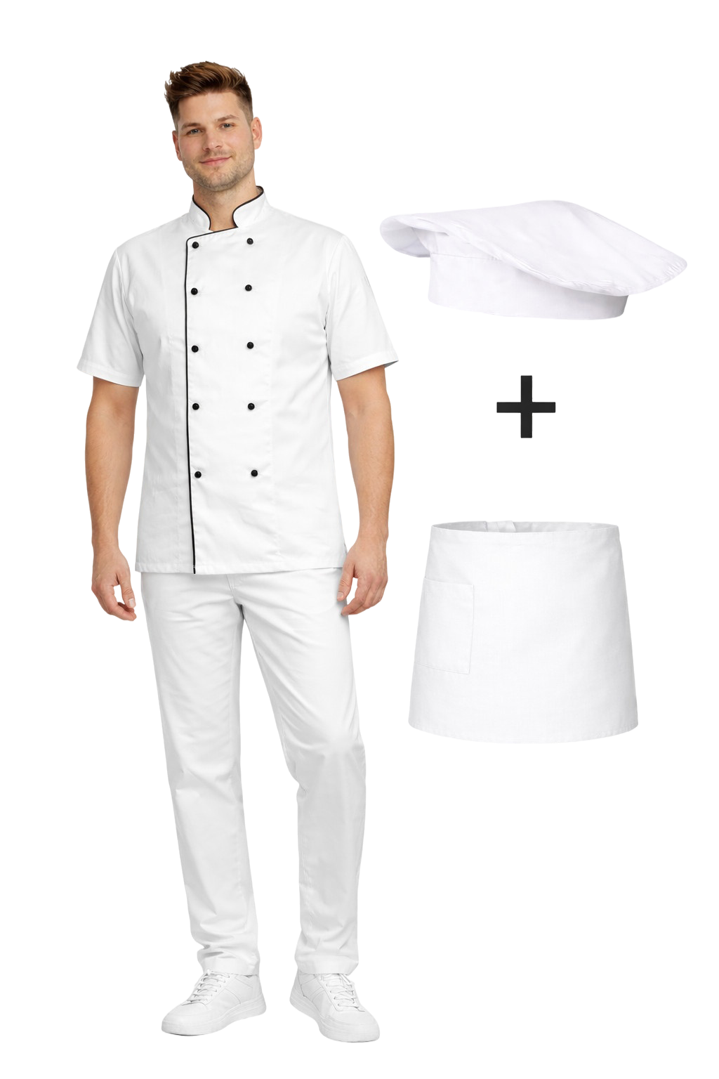 Uniforma kuhara / šefa kuhinje kompletna je garnitura ugostiteljske odjeće koja zadovoljava najviše standarde koji se primjenjuju u profesionalnim kuhinjama. Uredno, čisto i estetski odijelo izgrađuje povjerenje kupaca te naglašava profesionalizam ugostiteljskog osoblja. Set je dizajniran s obzirom na funkcionalnost, udobnost te sukladnost s dress codeom u ugostiteljstvu.