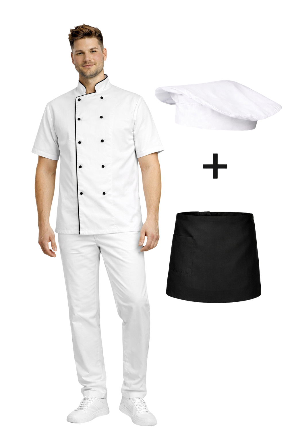 Uniforma kuhara / chefa kuhinje kompletni je set odjeće za ugostiteljstvo koja ispunjava najviše standarde primjenjive u profesionalnim kuhinjama. Sredan, čist i estetski radni odjev stvara povjerenje klijenata i ističe profesionalnost ugostiteljskog osoblja. Set je dizajniran s obzirom na funkcionalnost, udobnost i sukladnost s dress codeom koji se primjenjuje u ugostiteljstvu.