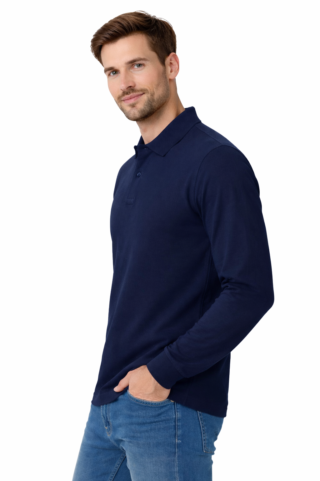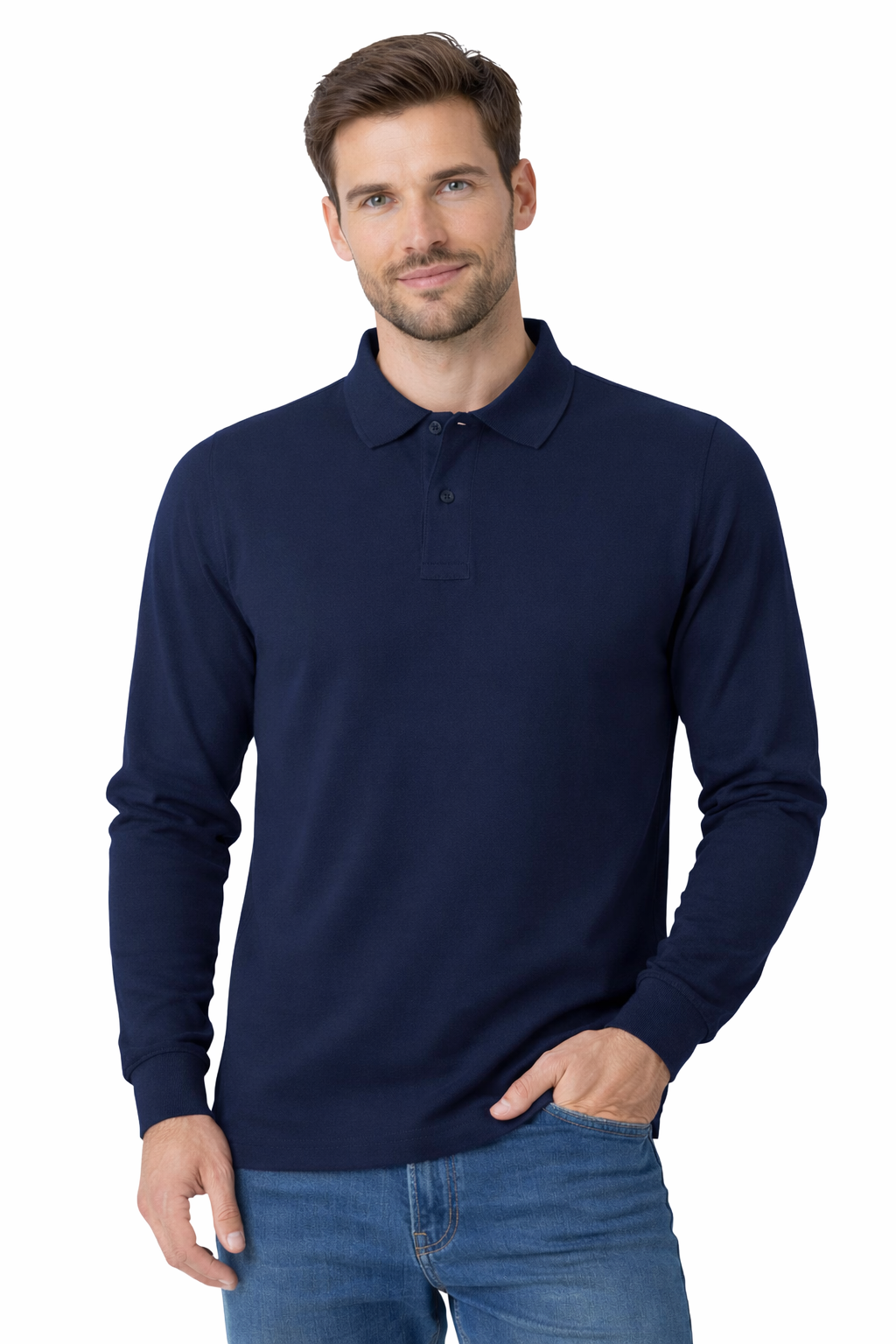 Moška medicinska polo majica mornarsko modra z dolgimi rokavi