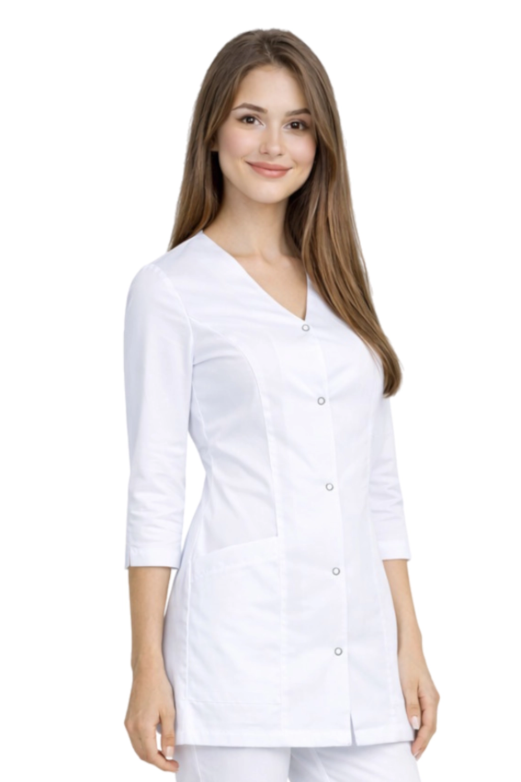Ženska medicinska jakna CASUAL PREMIUM u bijeloj boji je elegantan i funkcionalan prijedlog za žene koje rade u medicinskoj, kozmetičkoj i beauty industriji. Model kombinira profesionalni izgled i udobnost korištenja, stoga se odlično uklapa u liječničke ordinacije, estetske medicinske klinike, kao i kozmetičke salone, SPA centre ili na recepciji.