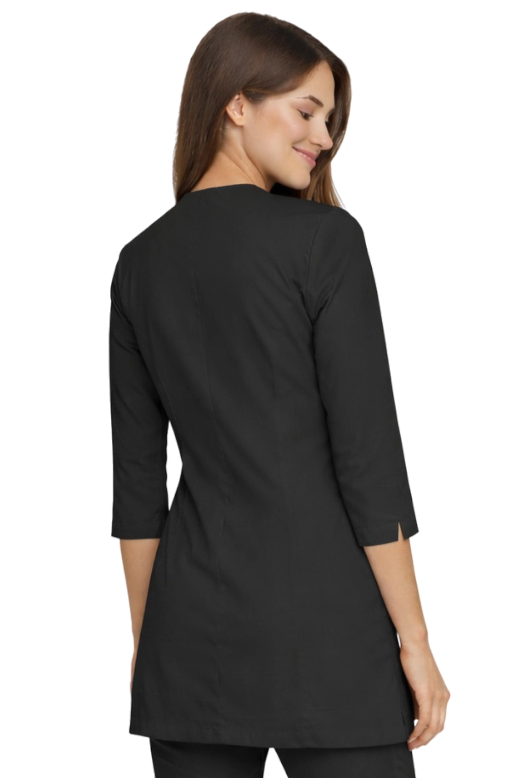 Ženski medicinski sako CASUAL PREMIUM u crnoj boji je elegantan i funkcionalan izbor za žene koje rade u medicinskoj, kozmetičkoj i beauty industriji. Model kombinira profesionalni izgled s praktičnošću, zbog čega je odličan izbor za medicinske ordinacije, estetske klinike, kozmetičke salone, SPA centre ili na recepciji.