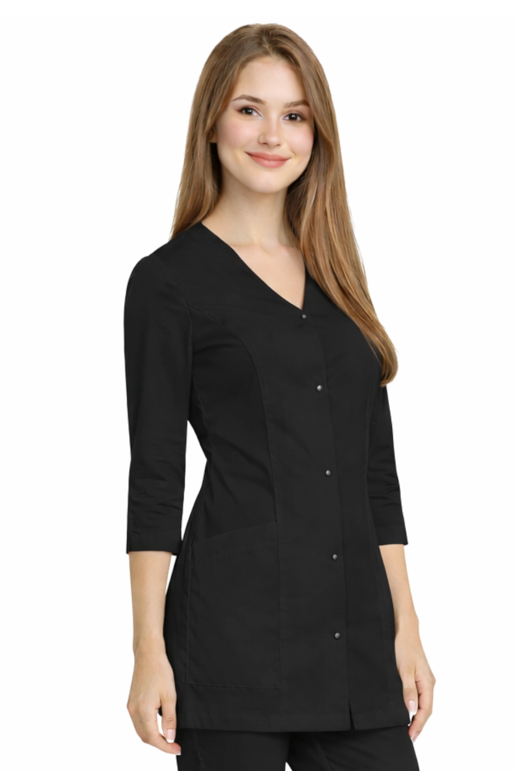 Ženski medicinski sako CASUAL PREMIUM u crnoj boji je elegantan i funkcionalan prijedlog za žene koje rade u medicinskoj, kozmetičkoj i beauty industriji. Model kombinira profesionalni izgled s udobnošću korištenja, što ga čini idealnim za korištenje u liječničkim ordinacijama, klinikama estetske medicine, kozmetičkim salonima, SPA centrima ili na recepciji.