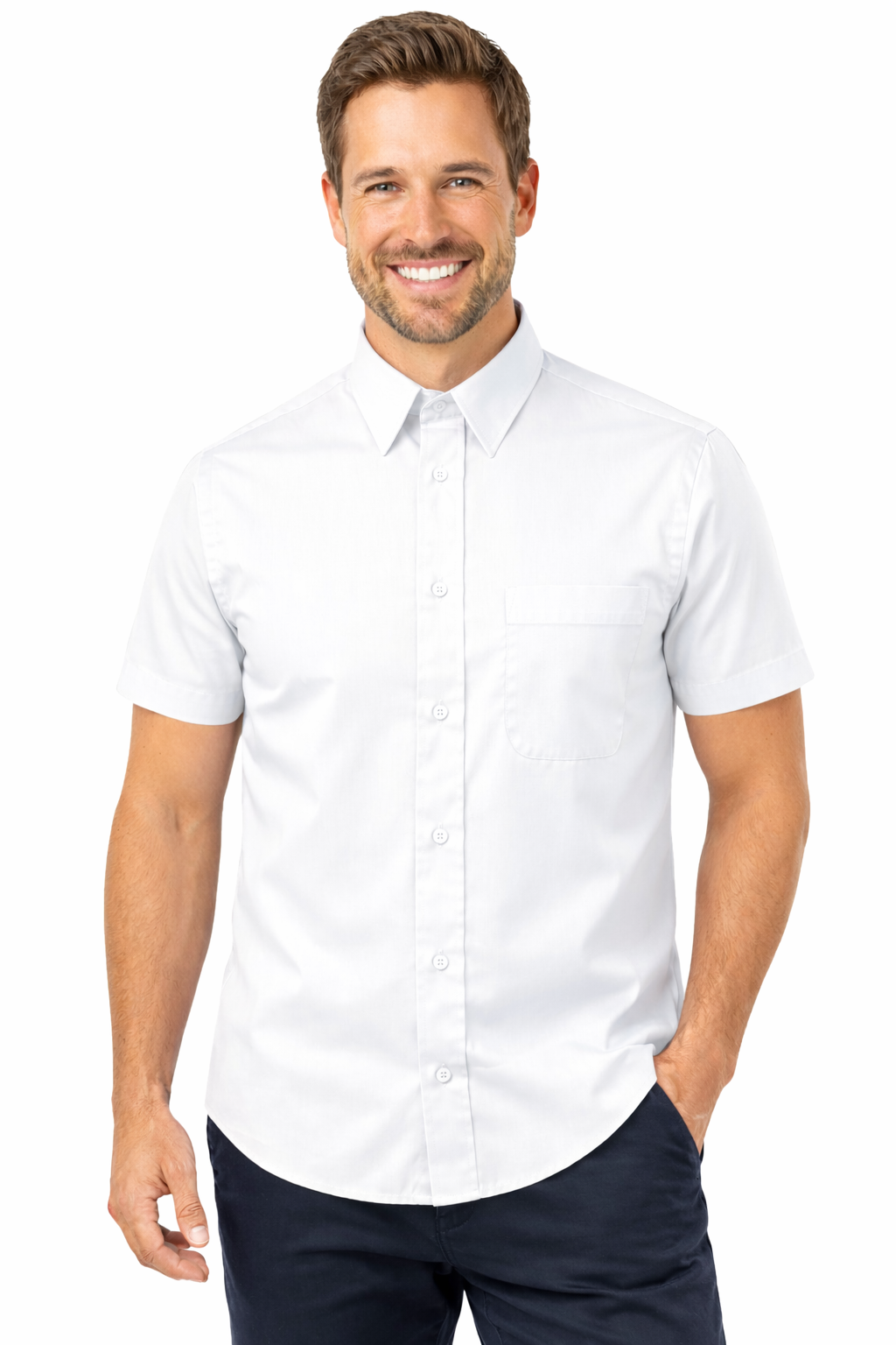 Bijela muška košulja s kratkim rukavima – poplin, izdržljiva i elegantna