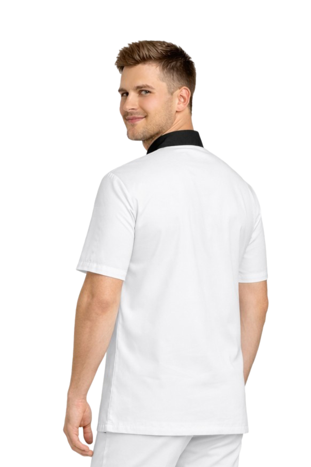 Kuharska bluza bijela muška s crnim ovratnikom i gumbima