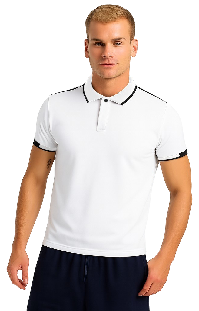 Muška elegantna bijela polo majica s crnim detaljima