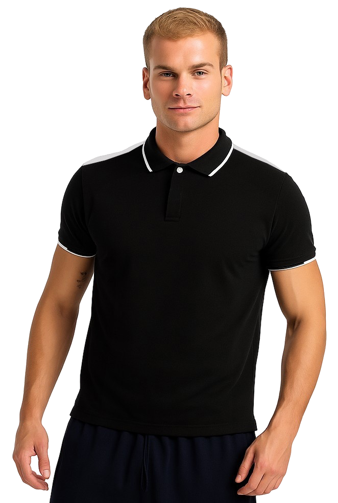 Muška elegantna crna polo majica s bijelim detaljima