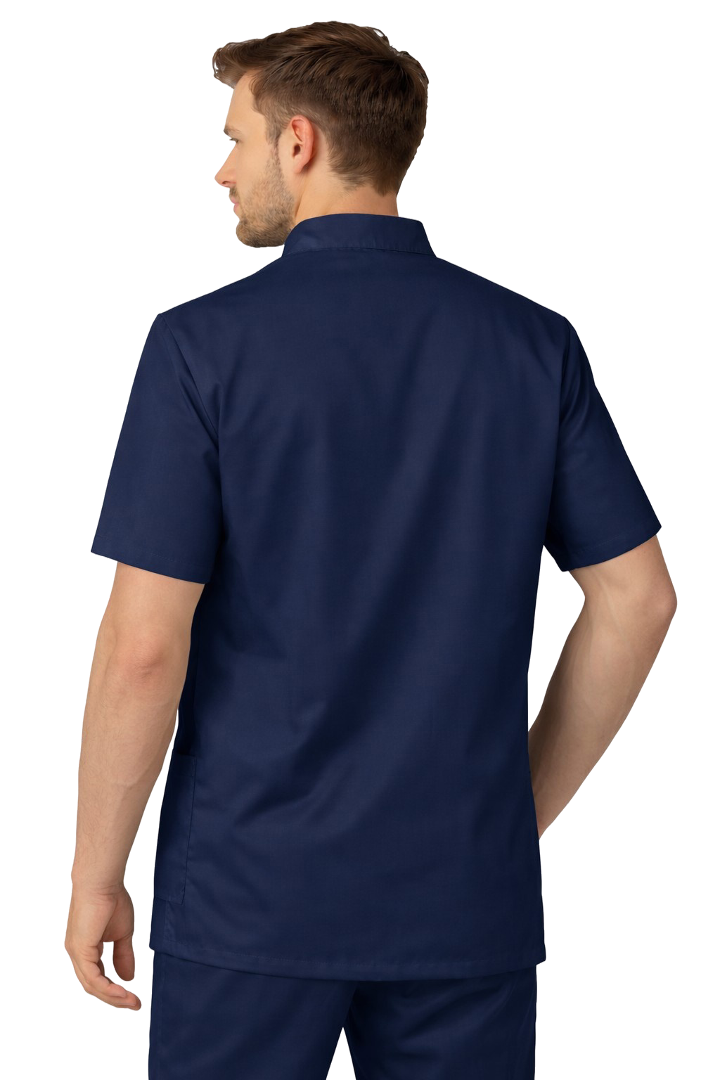 Muška medicinska bluza u tamnoplavoj boji s ovratnikom i kratkim rukavima