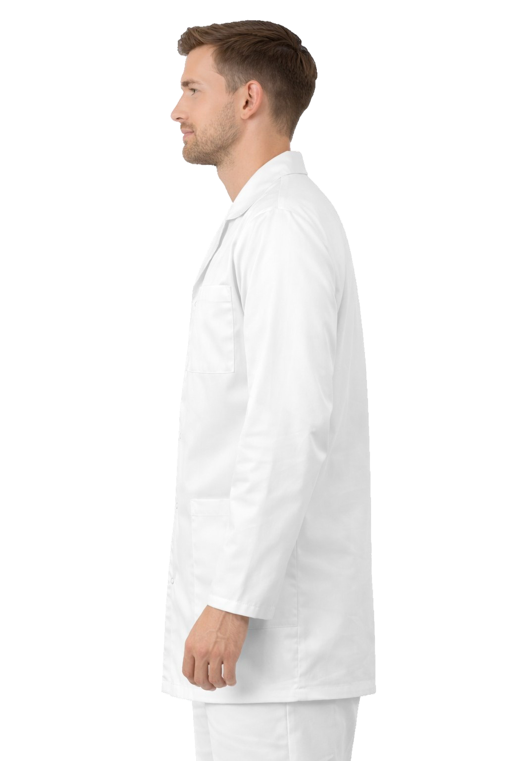 Bijela muška liječnička bluza s ovratnikom – elegantna medicinska pregača