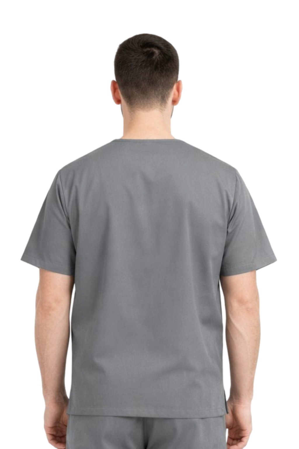 Siva muška medicinska bluza savršen je izbor za liječnike, medicinske sestre, fizioterapeute i gospodu koji rade u ljepotnoj industriji – u spa, wellness salonima i klinikama estetske medicine. Posebno dizajnirana za kirurge i instrumentarke, nudi potpunu udobnost i sigurnost – bez nepotrebnih traka ili pojaseva koji bi mogli ometati rad.