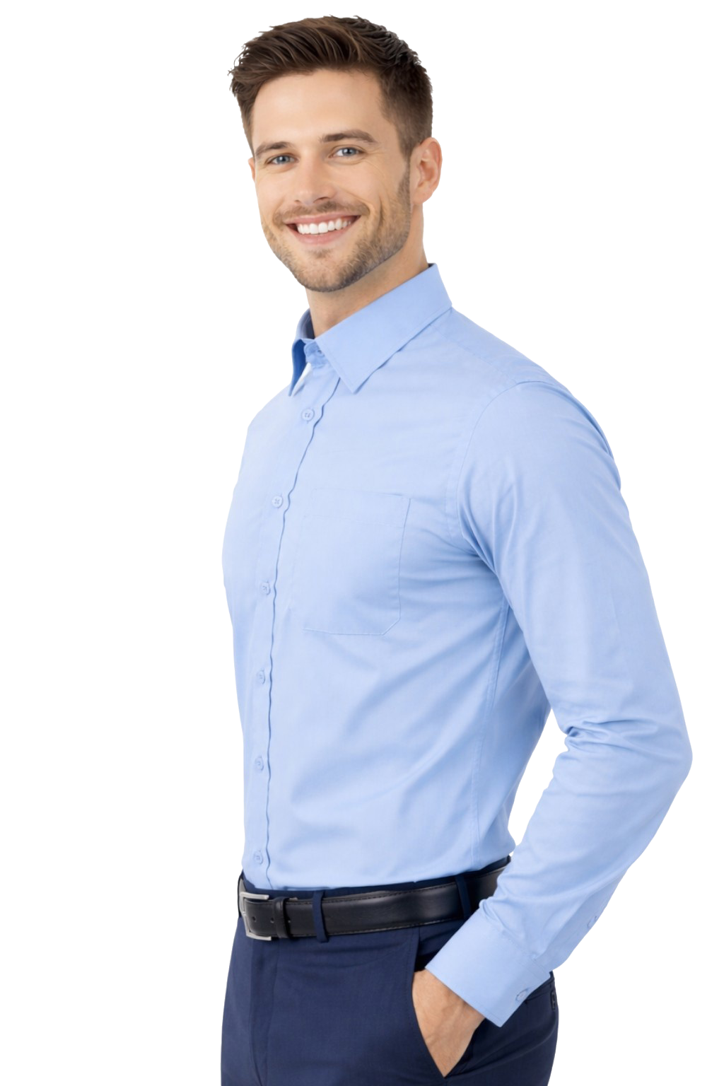 Muška košulja plave boje s dugim rukavima – popelinska, izdržljiva i elegantna