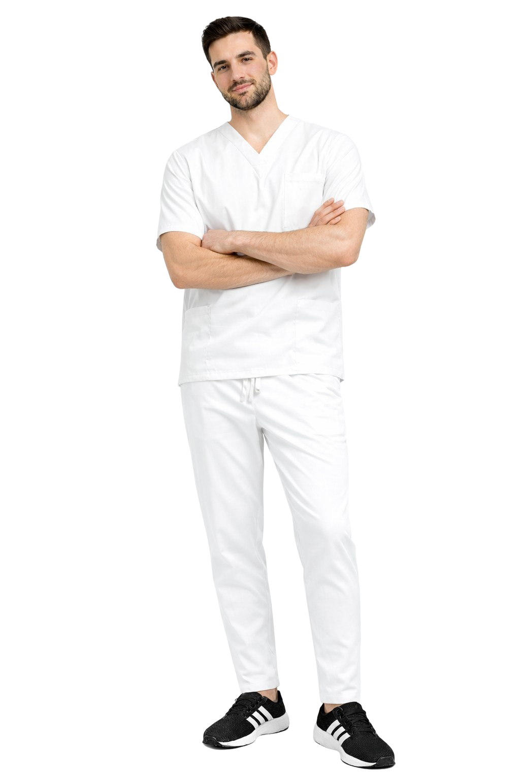 Komplet medicinske muške odjeće CLINIC SLIM u bijeloj boji – elegancija i udobnost na poslu