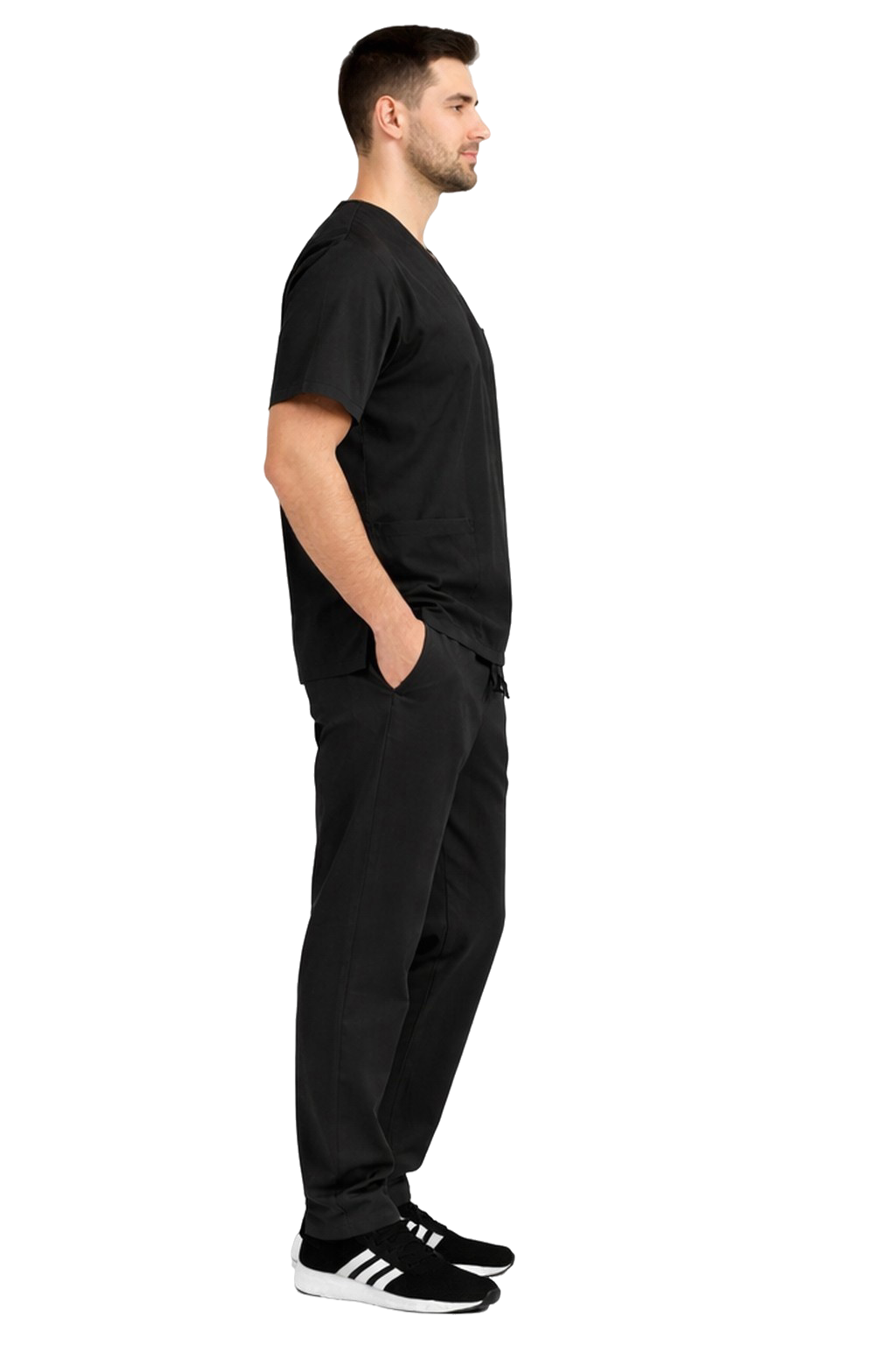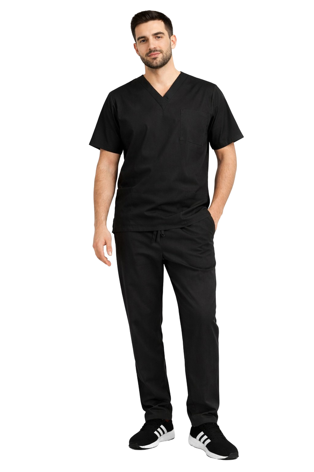 Moderan komplet muške medicinske odjeće CLINIC SLIM crne boje idealna je kombinacija profesionalnog izgleda, funkcionalnosti i udobnosti. Dizajniran s misli na liječnike, medicinske sestre, fizioterapeute i stručnjake za ljepotu, osigurava udobnost tijekom cijelog radnog dana - bez obzira na intenzitet obveza.