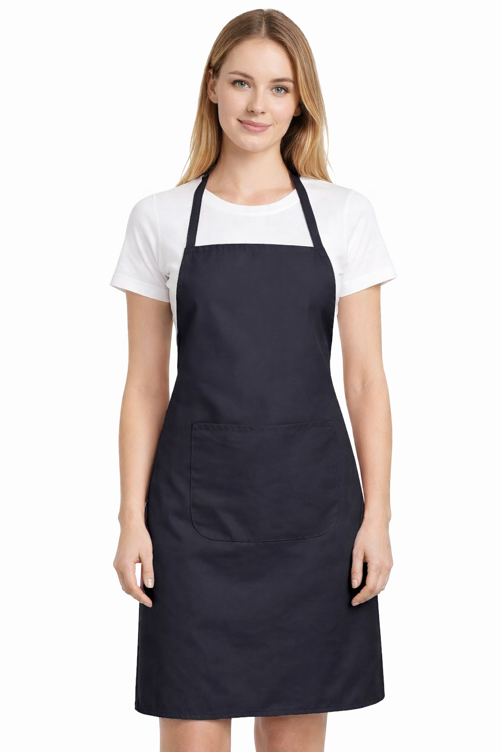 Lagana kuharska pregača s vratnim dijelom i praktičnim džepom, idealna za svakodnevni rad u kuhinji ili ugostiteljstvu. Sašivena je od tanke, glatke poliesterske tkanine – izdržljiva je, udobna i lagana za korištenje. Prilagodba u struku pomoću traka i tanak remen oko vrata omogućuje brzo prilagođavanje. Veliki džep na prednjoj strani pomaže držati bilježnicu, telefon, krpu ili pribor pri ruci. Izvrstan je i za personalizaciju (tisak/vezenje).