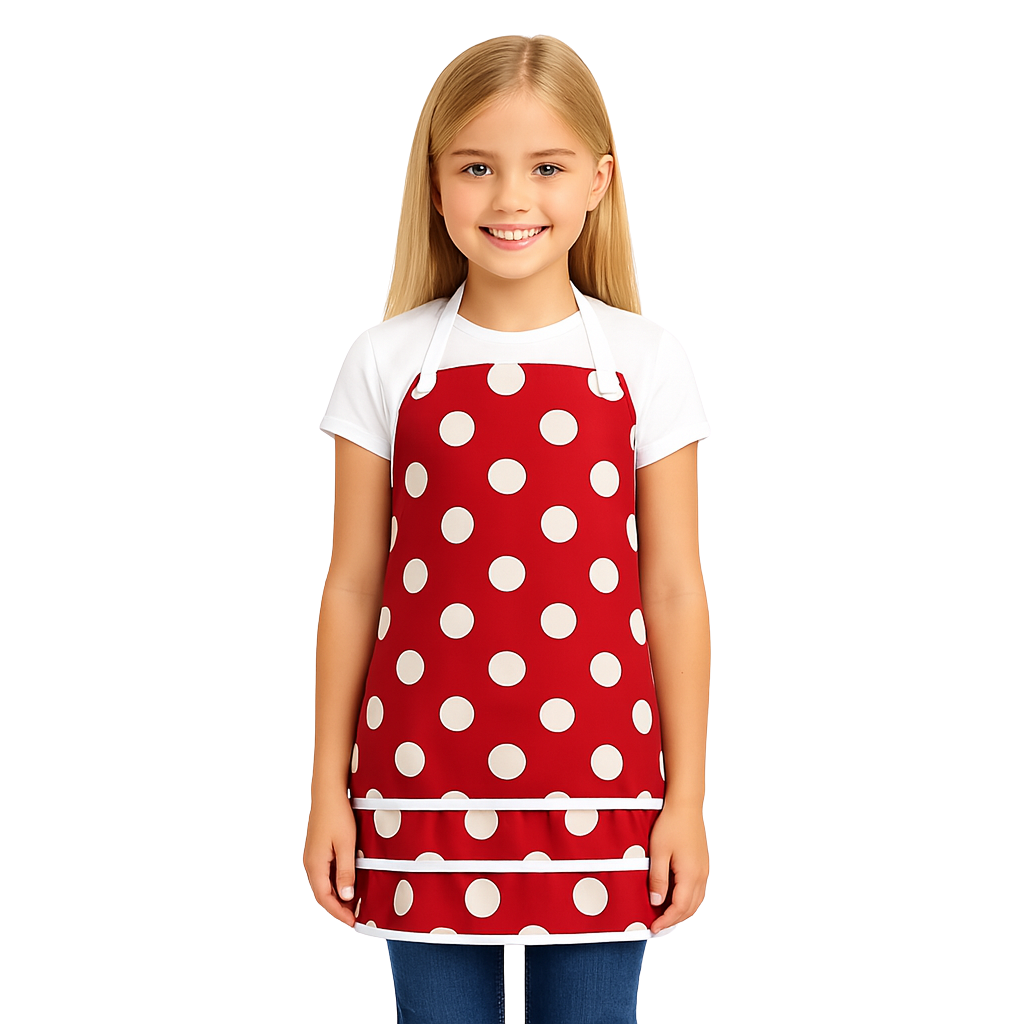 Stilni kuhinjski predpasnik za djecu crven s bijelim točkicama