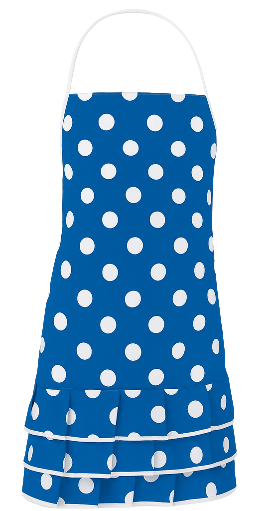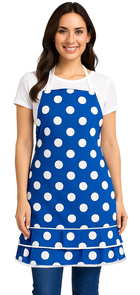 Stylizirani plavi kuhinjski pregač s bijelim točkicama za odrasle