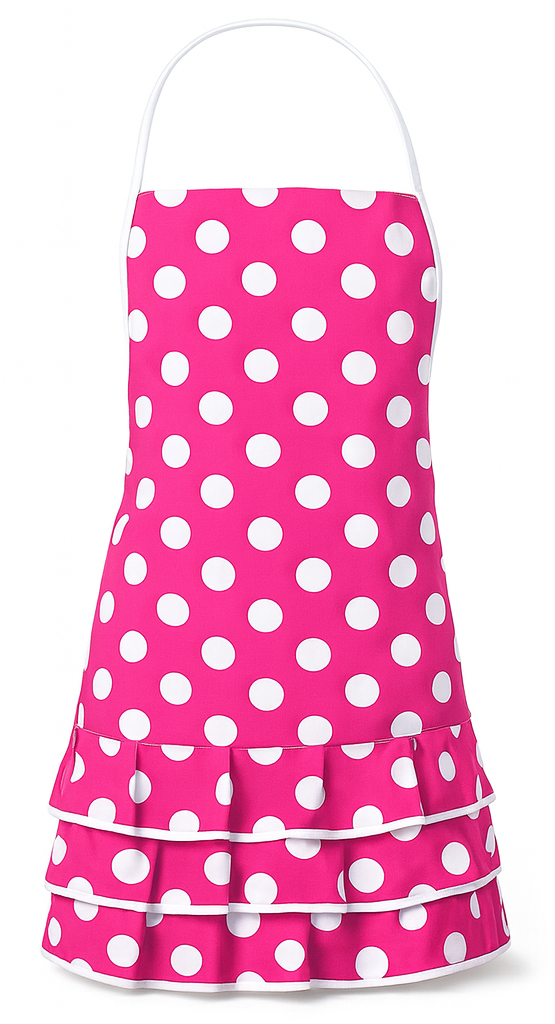 Unesite malo boje i radosti u svoju kuhinju s ružičastim predpasnikom s bijelim točkicama. Ovaj modni i funkcionalni predpasnik savršen je kako za svakodnevno kuhanje, tako i za pečenje u društvu obitelji. Dostupan u verzijama za odrasle i djecu, omogućava stvaranje slatkih, obiteljskih kuhinjskih setova.