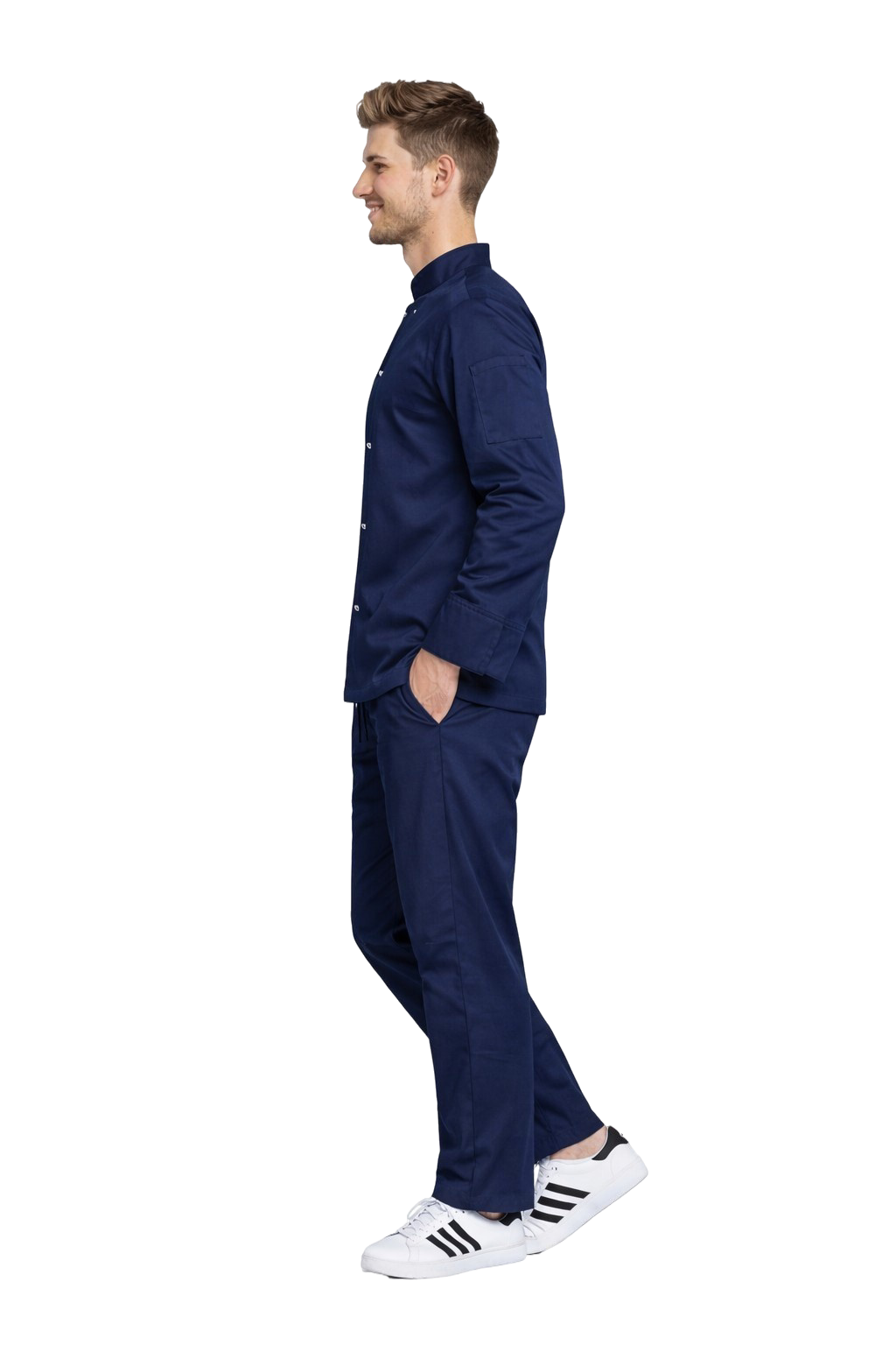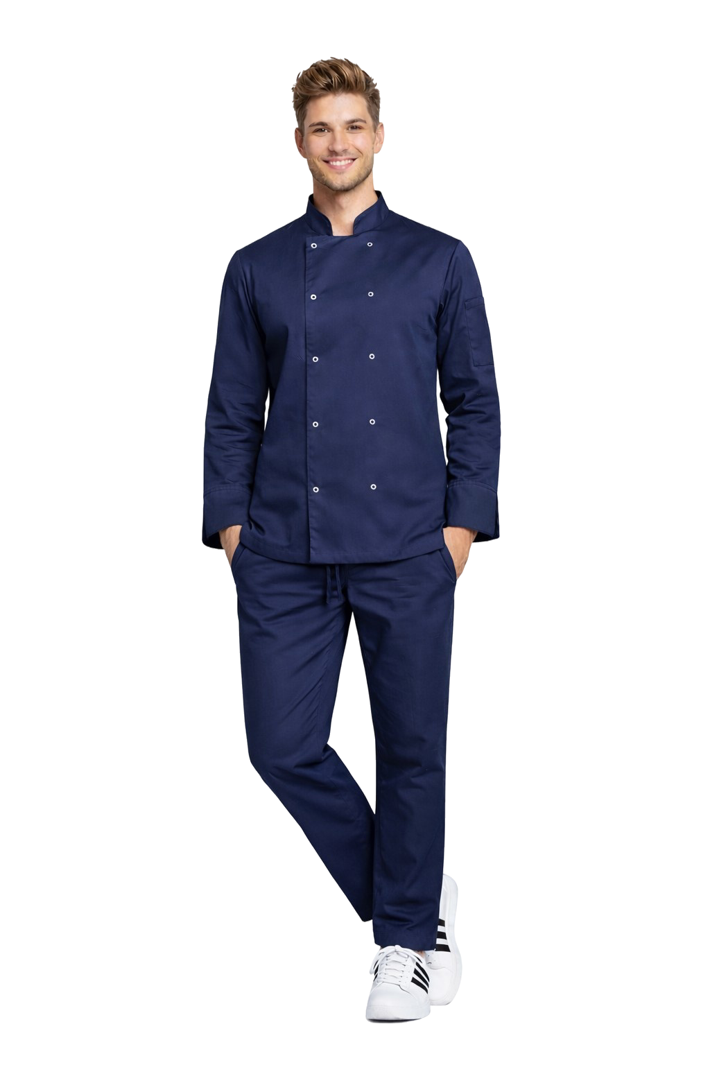 Zahvaljujući upotrebi tkanine s dodatkom elastana, set osigurava visoki komfor rada, estetski izgled i potpunu slobodu kretanja, što je od ključne važnosti u dinamičnom kuhinjskom okruženju.