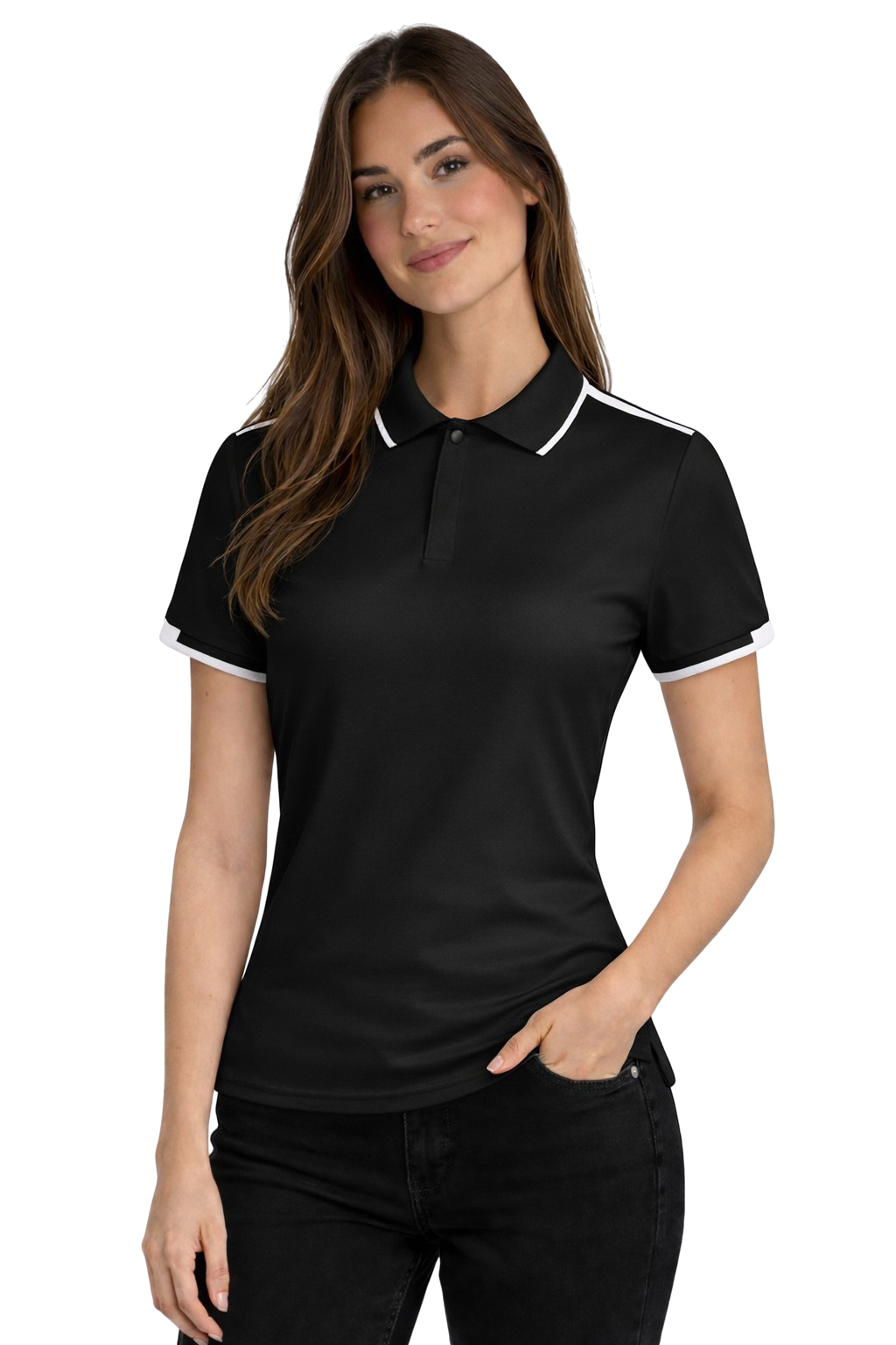 Ženska elegantna crna polo majica s bijelim detaljima