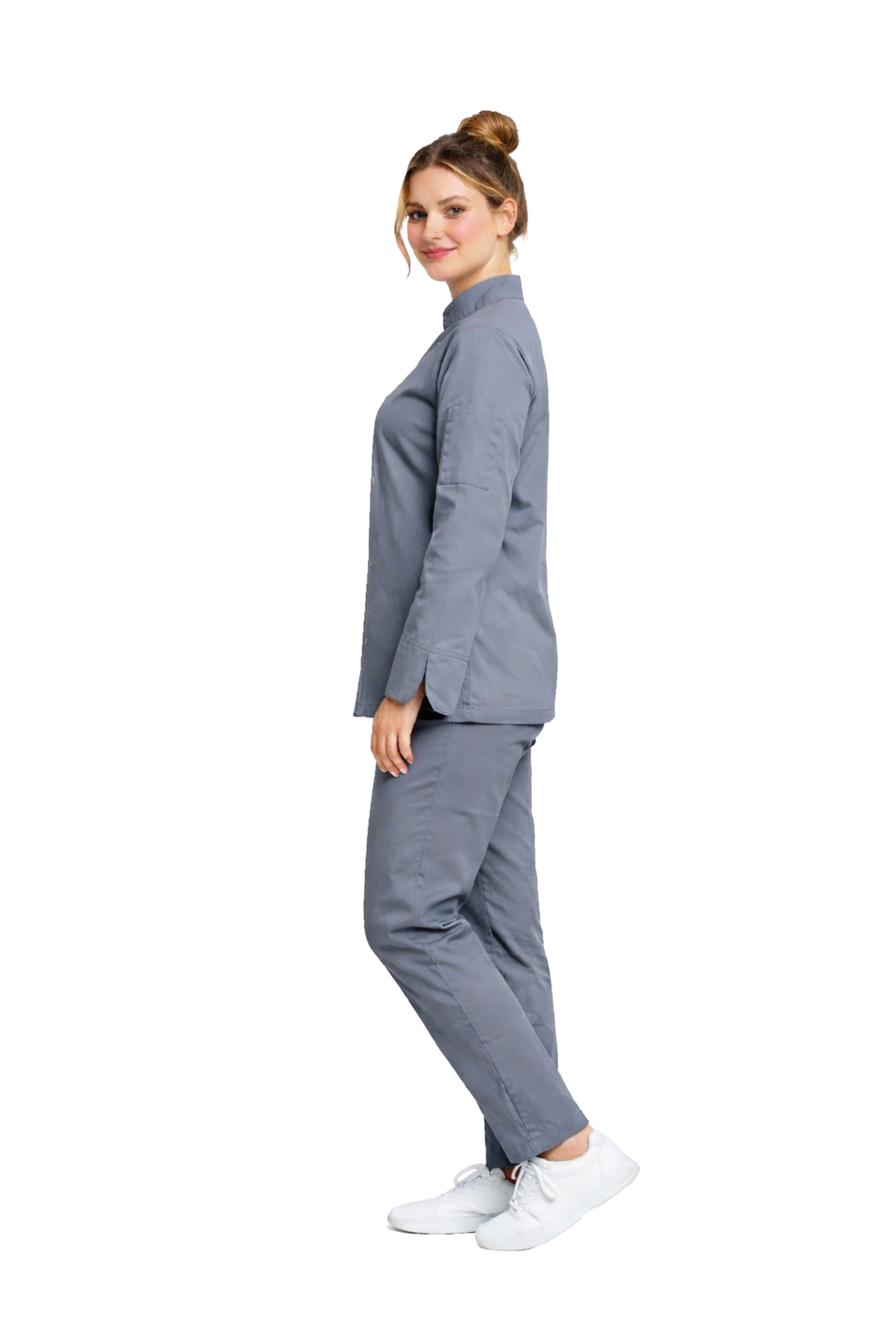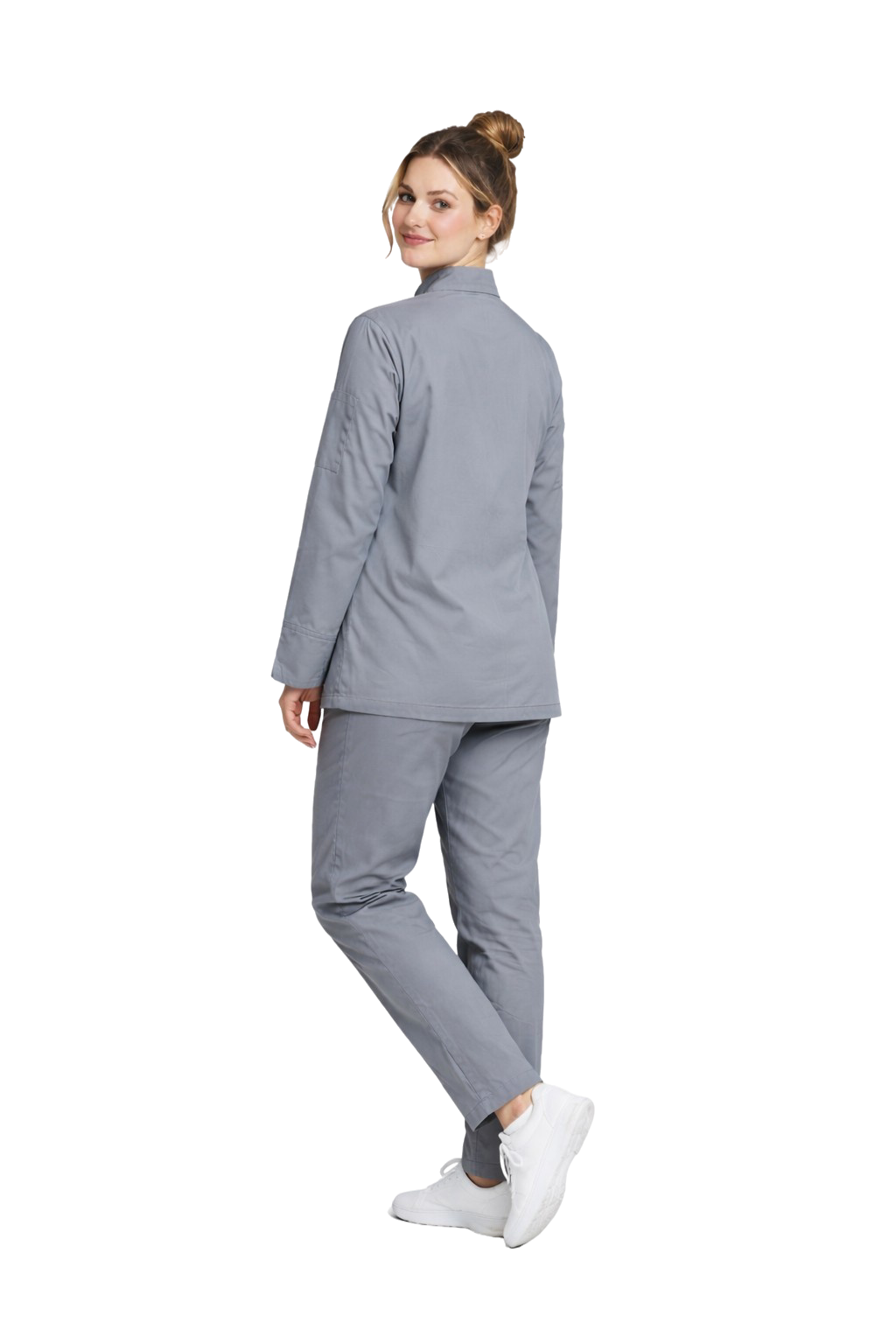 Ženska kuharska uniforma siva elastična gastronomska garnitura