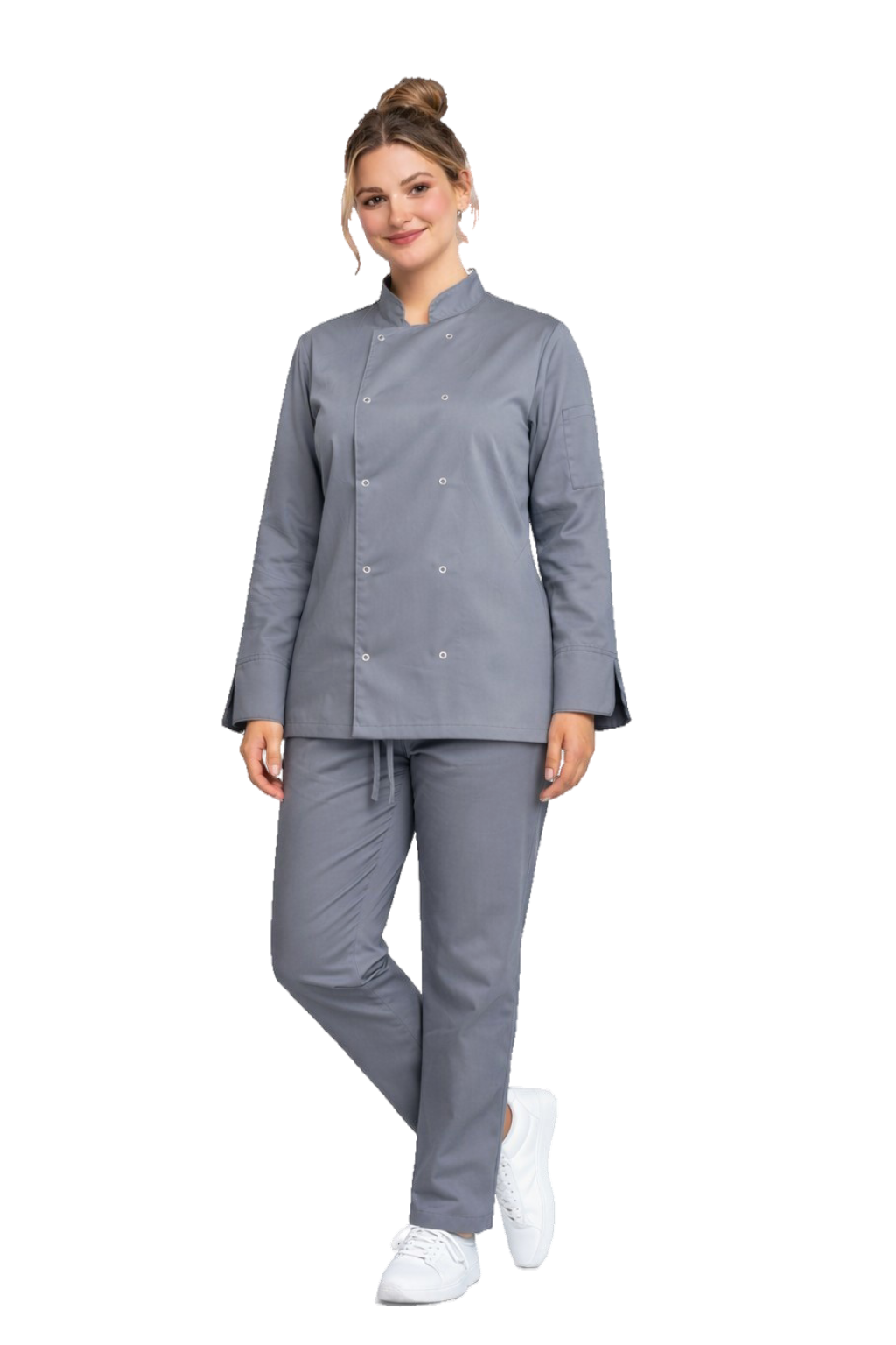 Ženska kuharska uniforma siva – fleksibilni gastronomski set