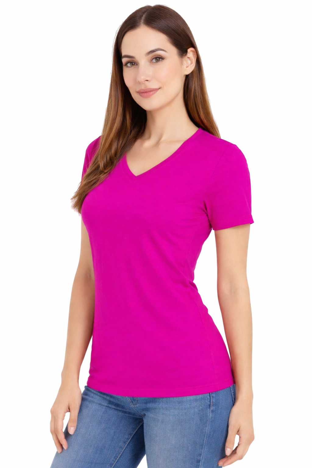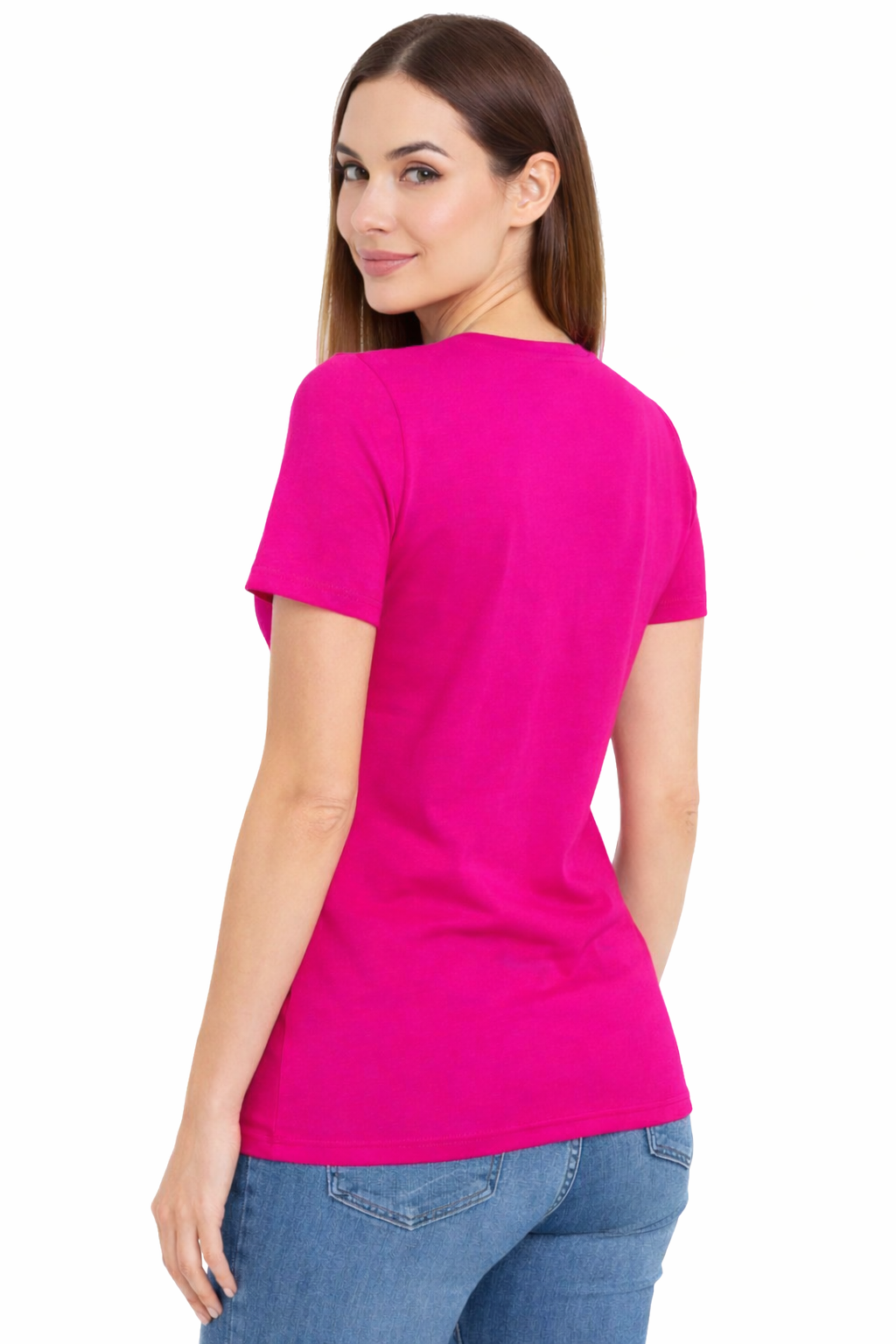 Ženska majica kratkih rukava s V-izrezom fuksija boje