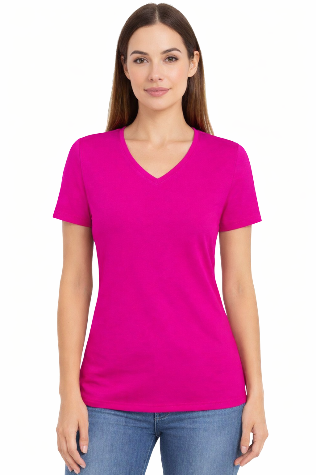 Ženska majica fuksija boje s kratkim rukavima i V izrezom je lagana, udobna opcija za svaki dan i za rad. Izrađena od Single Jersey tkanine od 100% pamuka, osigurava prozračnost i udobnost nošenja. Usklađen kroj naglašava siluetu, a gramatura od 145 g čini materijal mekanim i ugodnim na dodir. Model dostupan u veličinama S–XXL, također je odličan kao osnova za tisak ili kao korporativna odjeća.