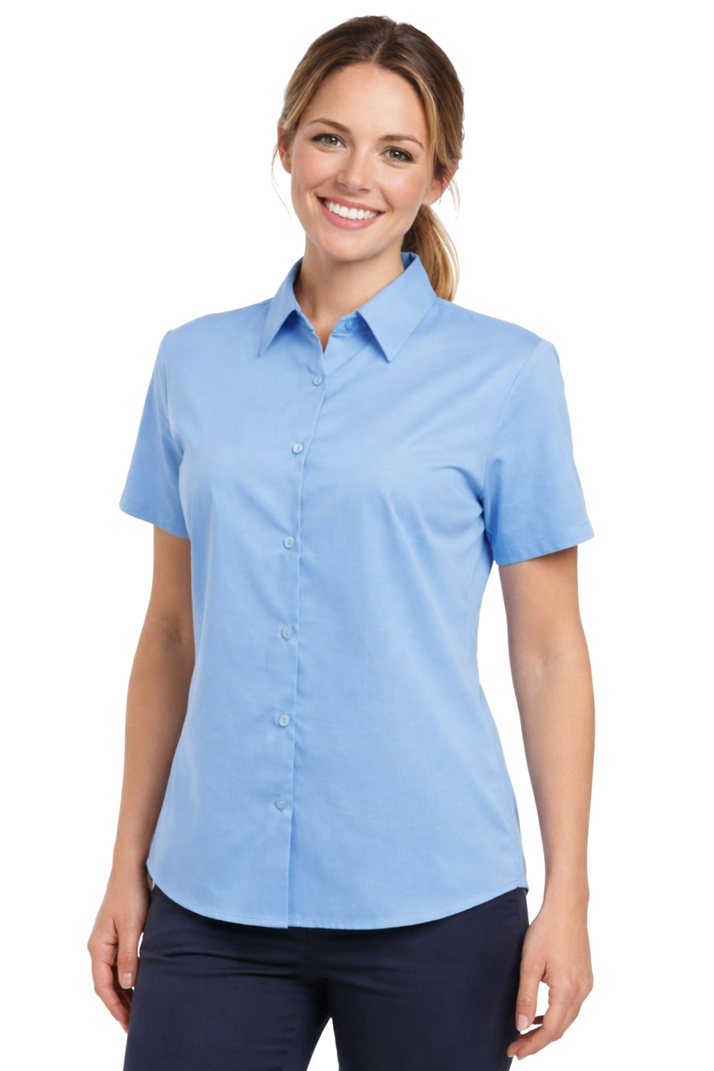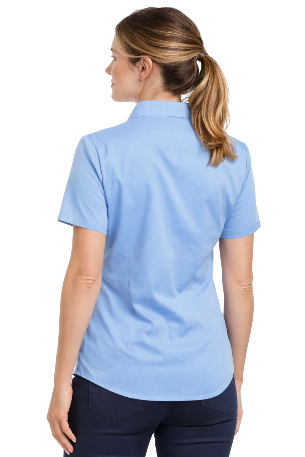 Ženska plava košulja kratki rukav – elegancija i udobnost na poslu