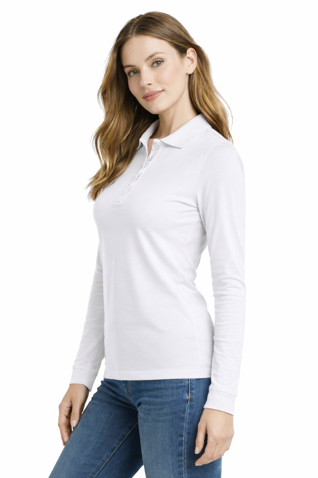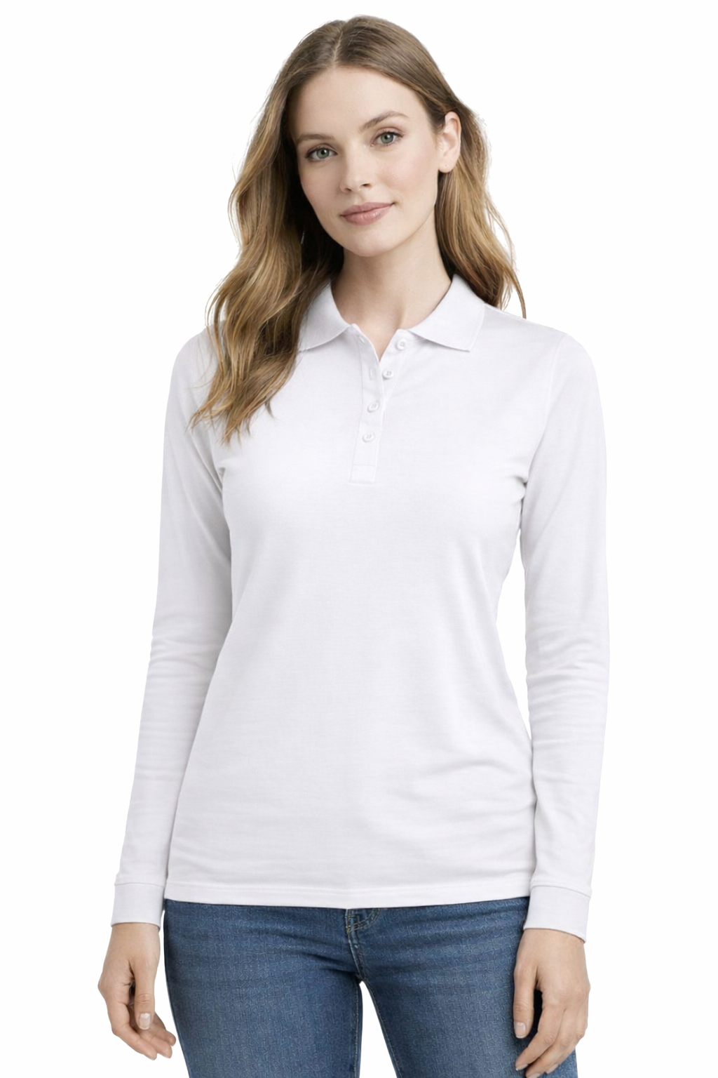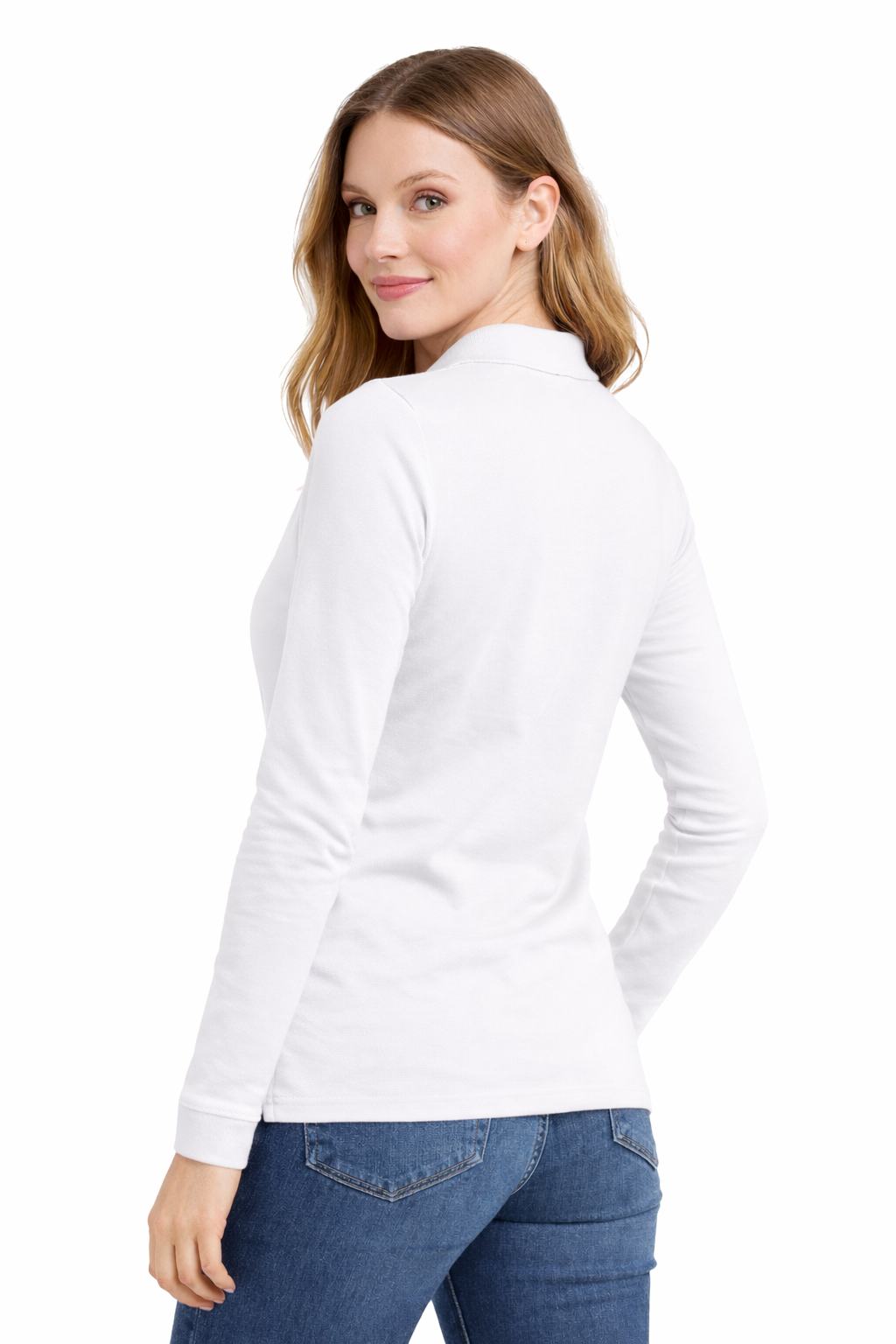 Ženska polo majica s dugim rukavima boje bijelo – udobnost na poslu i profesionalan izgled