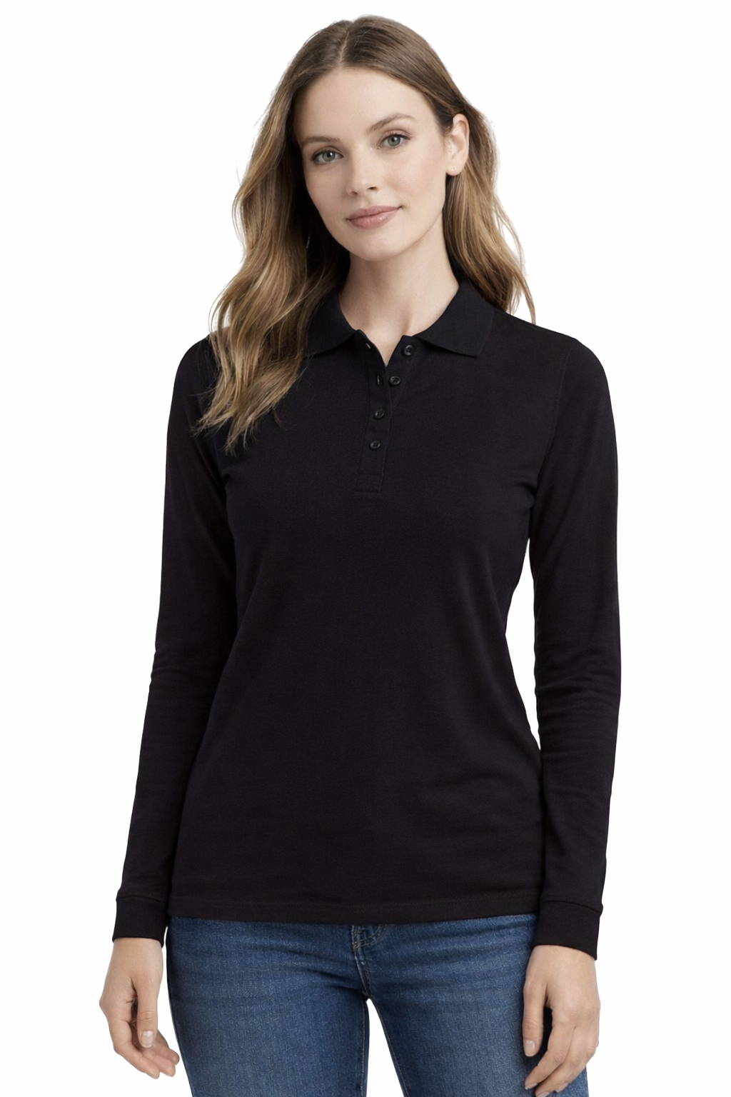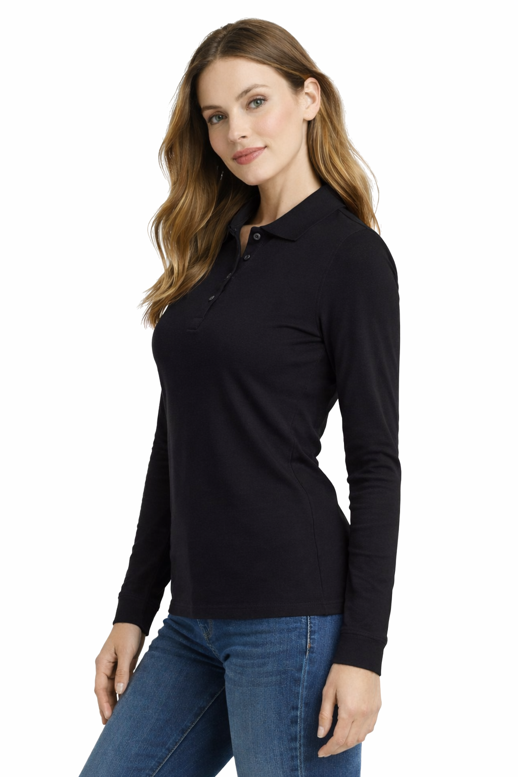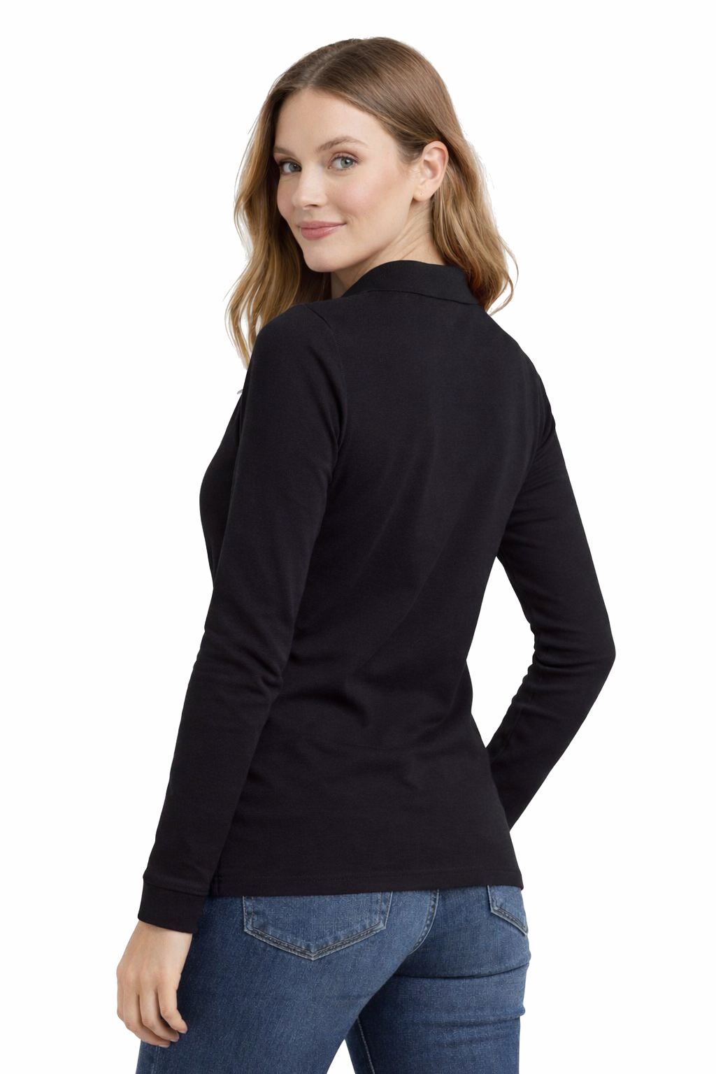 Damska polo majica s dugim rukavima boja crna - udobnost na poslu i profesionalni izgled