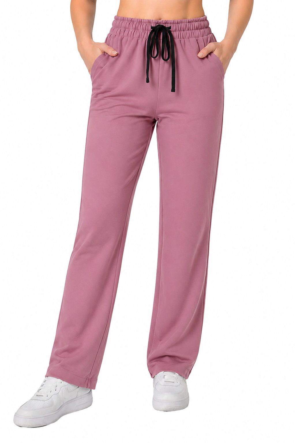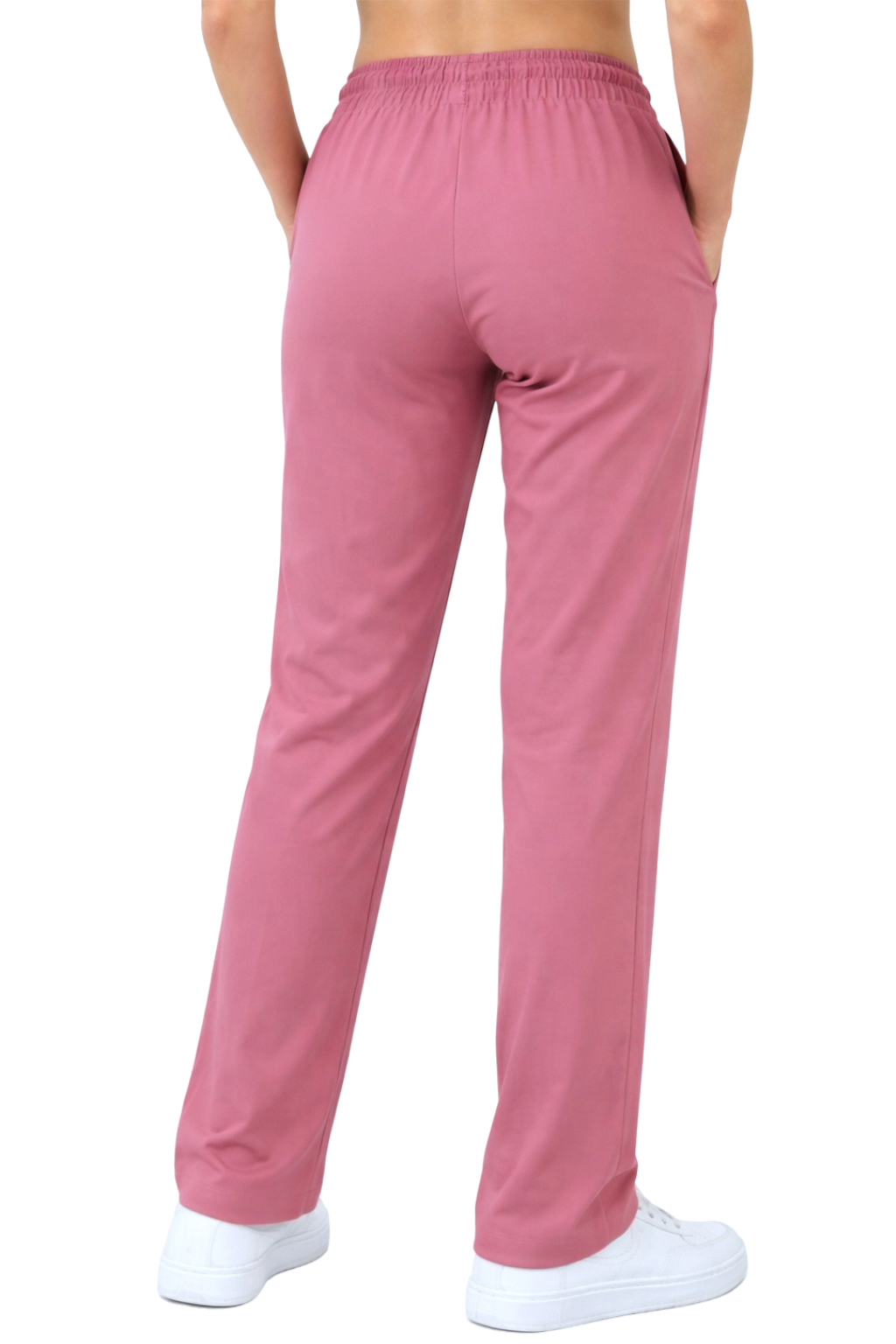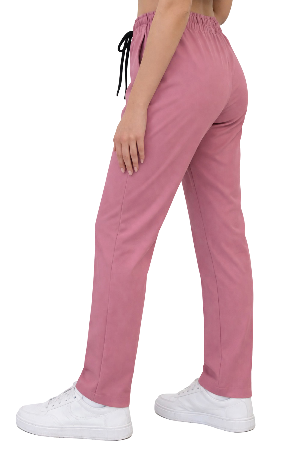 Ženske medicinske hlače s klasičnim ravno rezanim nogavicama - CASUAL PREMIUM prljavo roza
