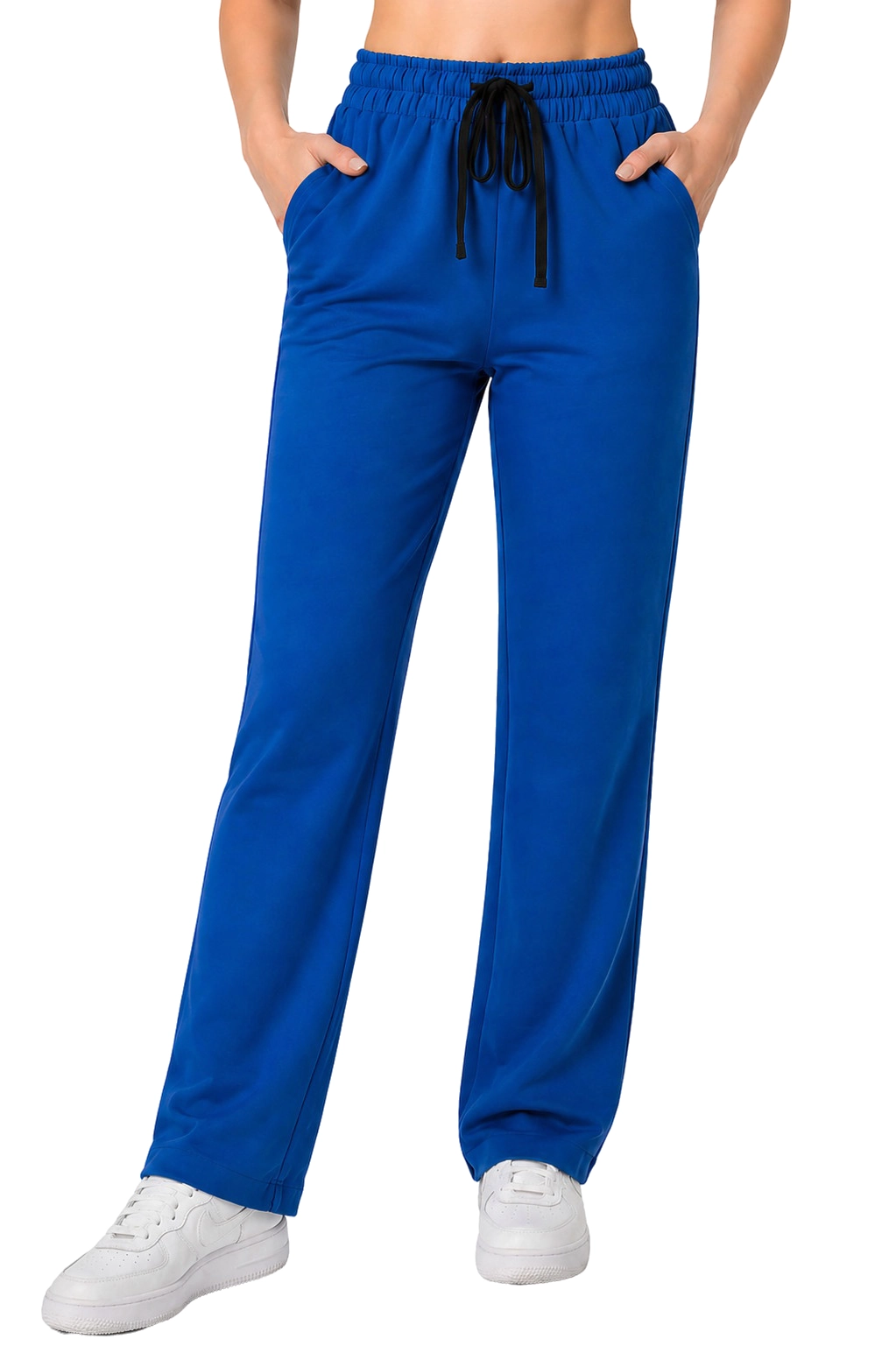 Ženske medicinske hlače s ravnom klasičnom nogavicom - CASUAL PREMIUM plave boje