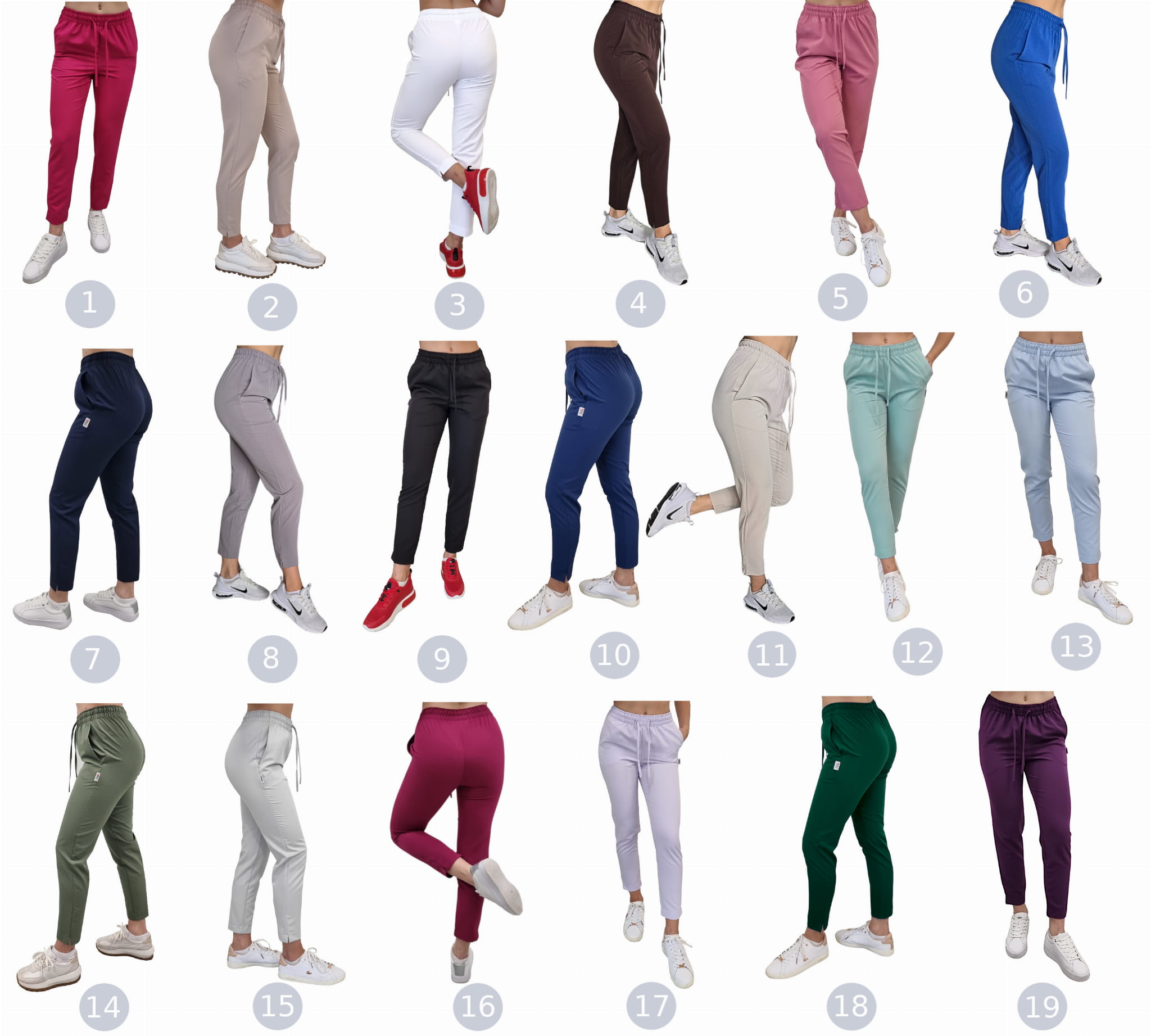 Material hlač je zračen, lahek in raztegljiv, zato se popolnoma prilega silhueti. Z gotovostjo lahko rečemo, da so izjemno udobne za nošenje in ne omejujejo gibanja. Ta izdelek ni namenjen le zdravnikom, medicinskim sestram, fizioterapevtom, kirurgom in predšolskim otrokom, temveč tudi vsem ženskam v lepotni industriji, kot so zdravilišča, klinike za wellness in estetsko medicino.