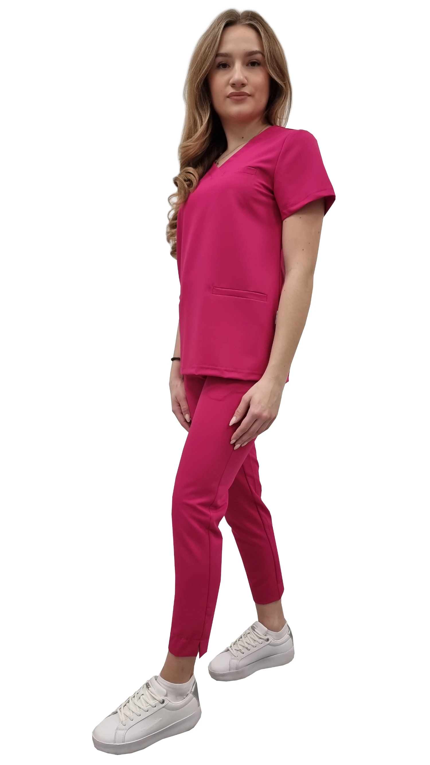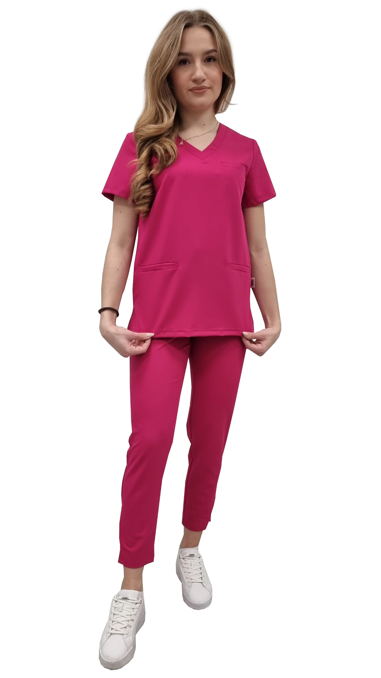 Ženski medicinski set BASIC PREMIUM u boji amarant roza je idealno rješenje za profesionalke koje cijene udobnost i eleganciju na poslu. Izrađen od visokokvalitetnih materijala, pruža izvrsnu trajnost i udobnost nošenja tijekom cijelog dana. Zahvaljujući modernom kroju i suptilnom bojenju, set se savršeno uklapa u aktualne trendove medicinske mode. Provjerite kako lako možete kombinirati funkcionalnost sa stilom!