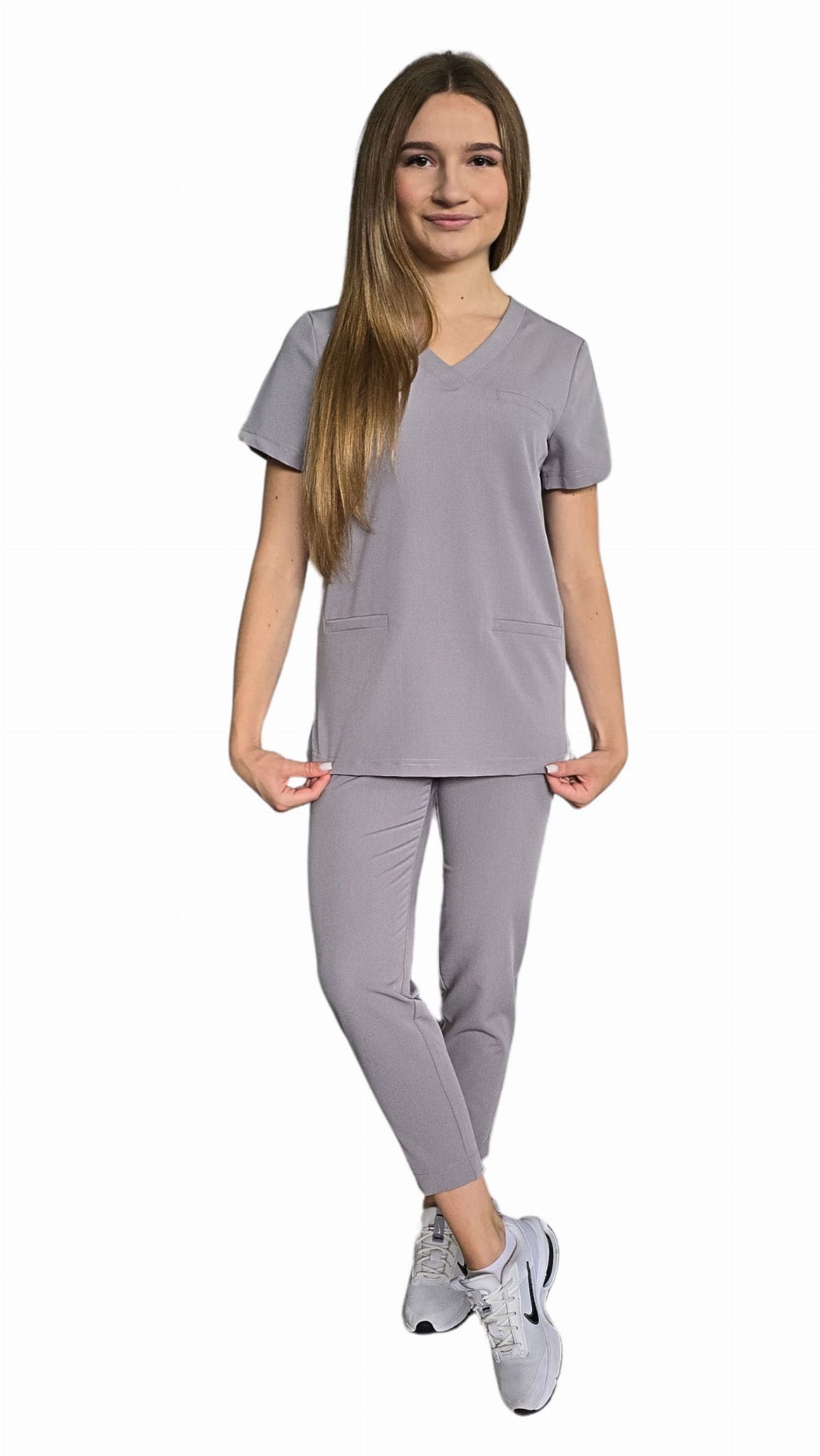 Komplet medicinske ženske odjeće BASIC PREMIUM u tamno sivoj boji idealno je rješenje za profesionalke koje cijene udobnost i eleganciju na poslu. Izrađen od visokokvalitetnih materijala, pruža izvrsnu trajnost i udobnost nošenja tijekom cijelog dana. Zahvaljujući modernom kroju i suptilnoj koloristici, komplet se savršeno uklapa u trenutne trendove medicinske mode. Provjerite kako lako možete kombinirati funkcionalnost sa stilom!
