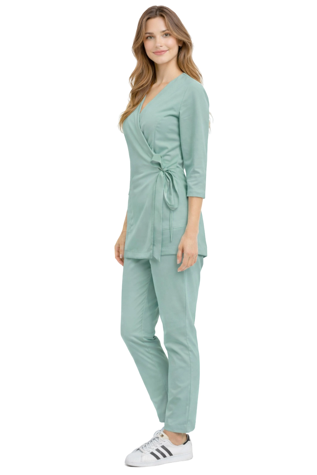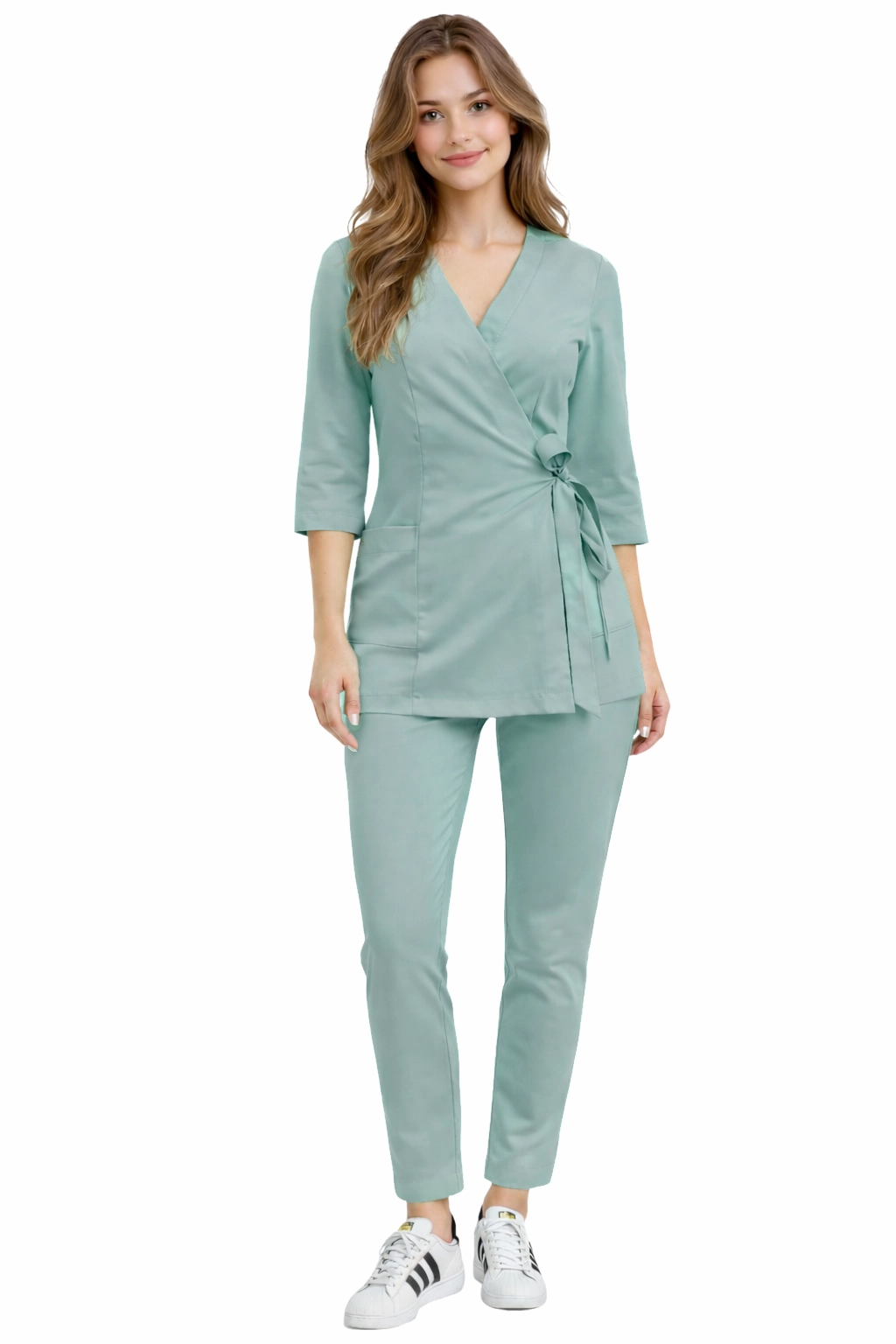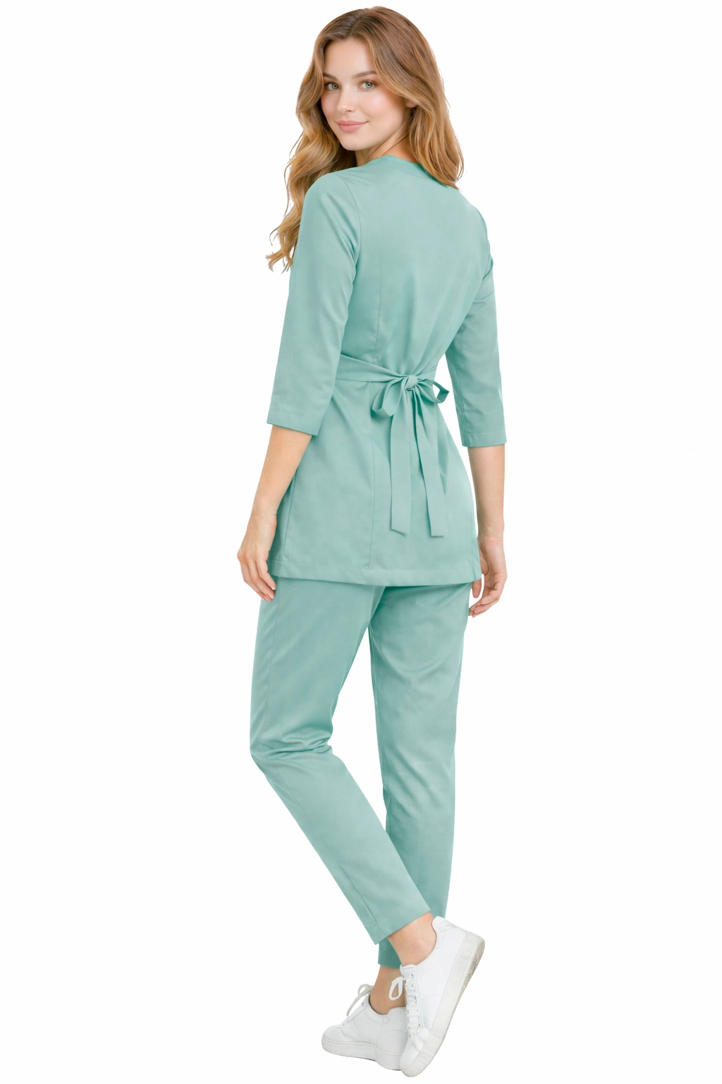 Ženski medicinski set BASIC PREMIUM u mint boji je harmonična kombinacija elegancije, udobnosti i funkcionalnosti. Set je dizajniran za žene koje rade u medicinskim, kozmetičkim i beauty sektorima i koji žele izgledati profesionalno, a u isto vrijeme se osjećati opušteno tijekom cijelog radnog dana.